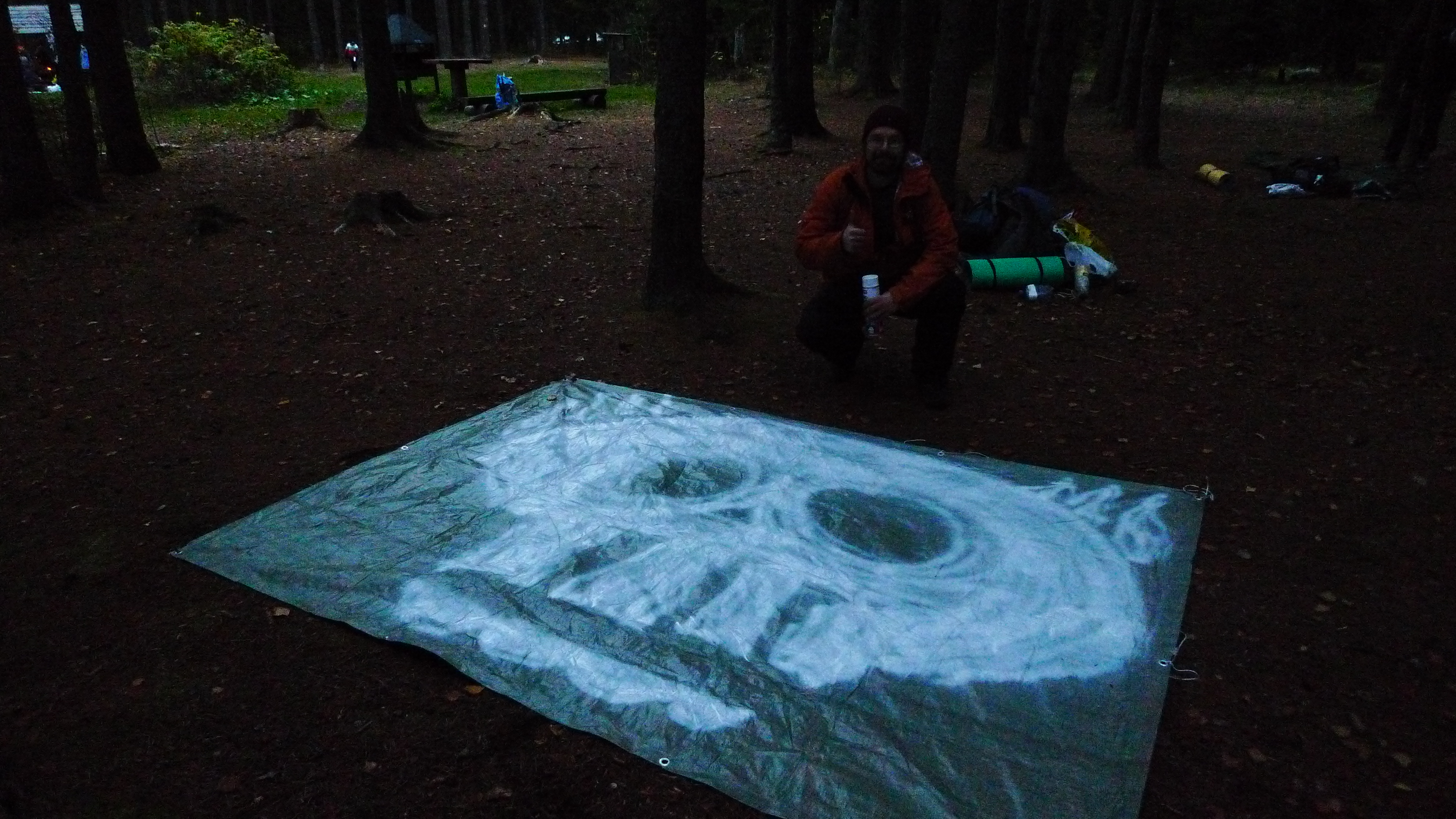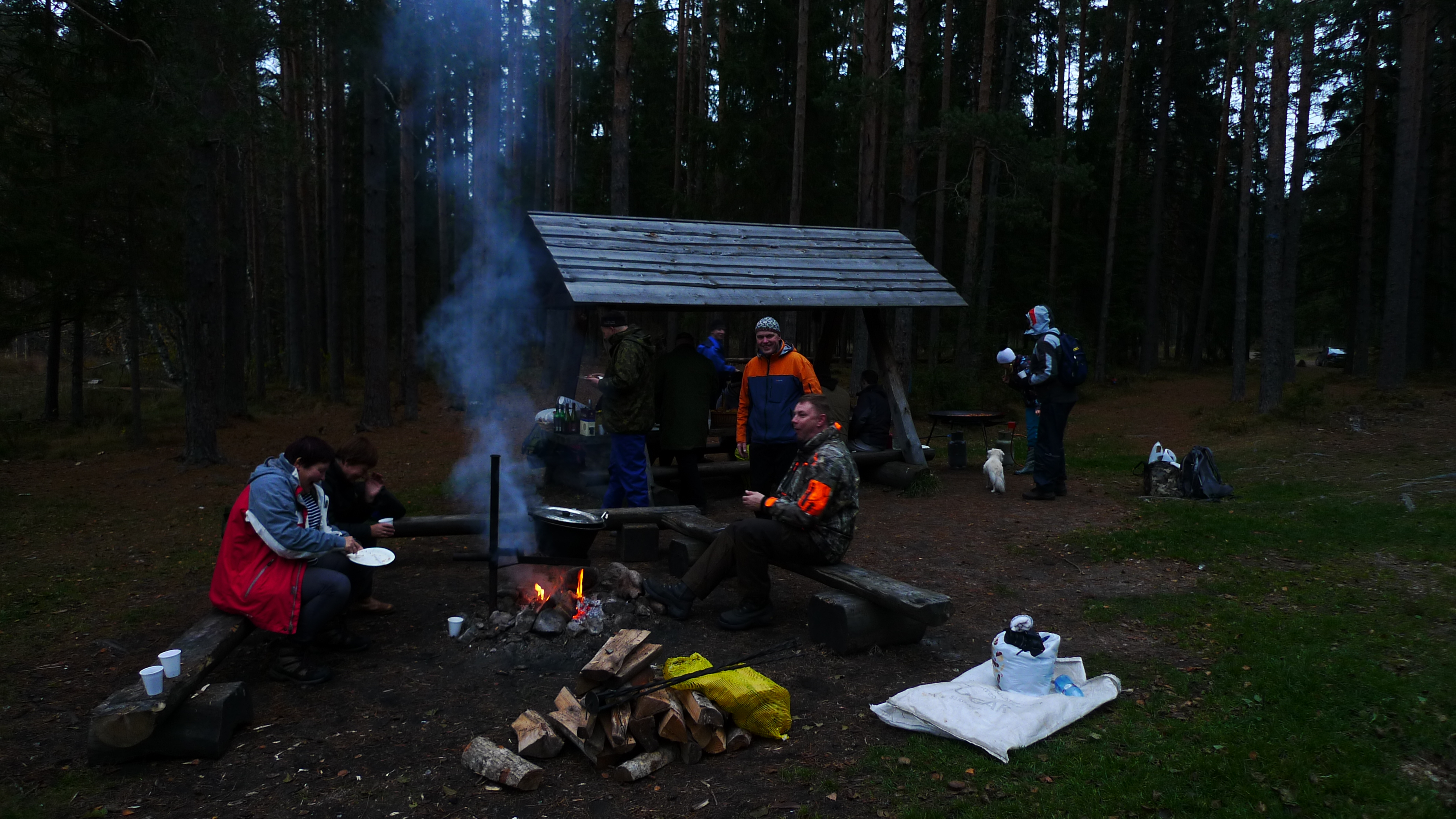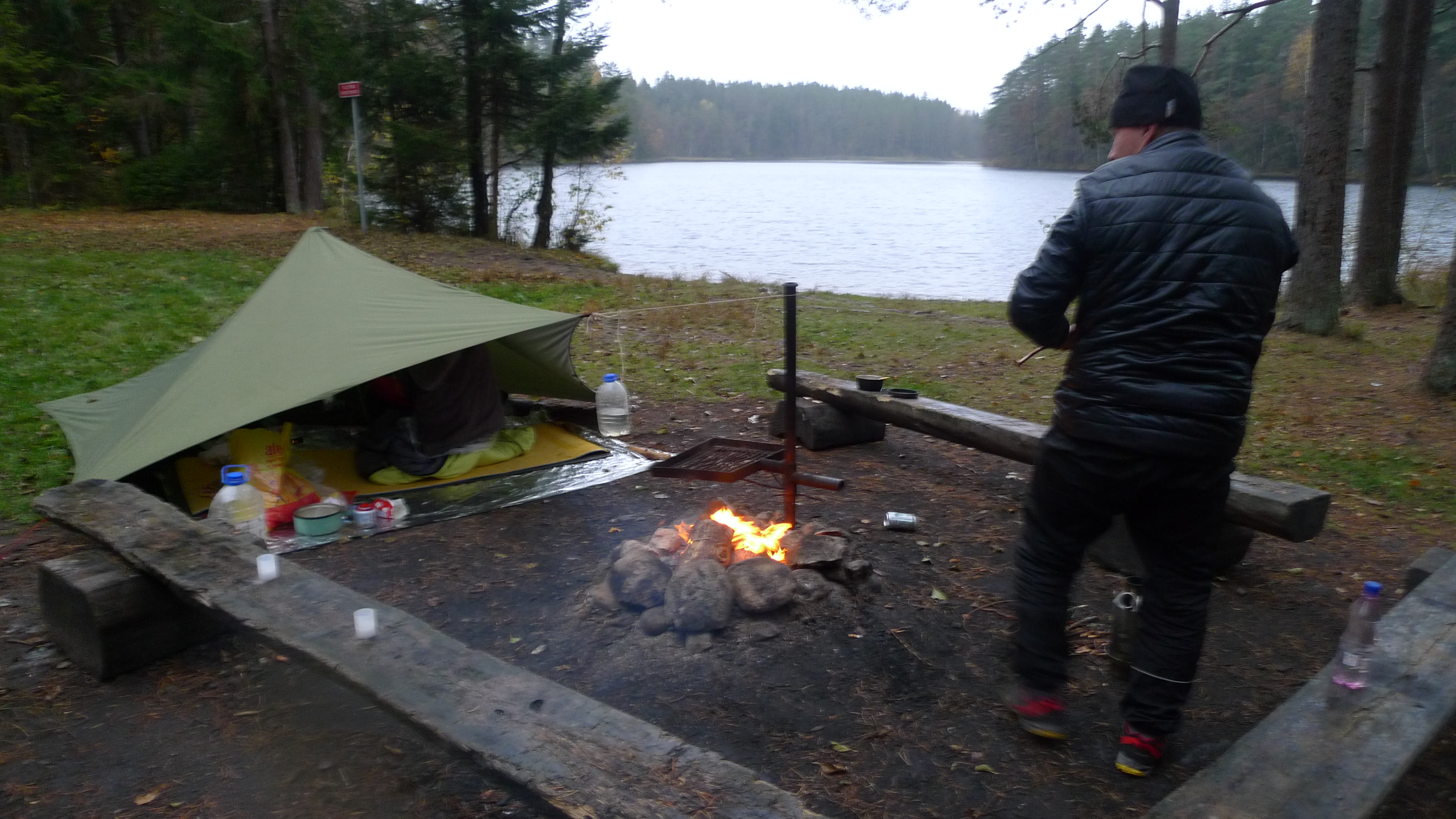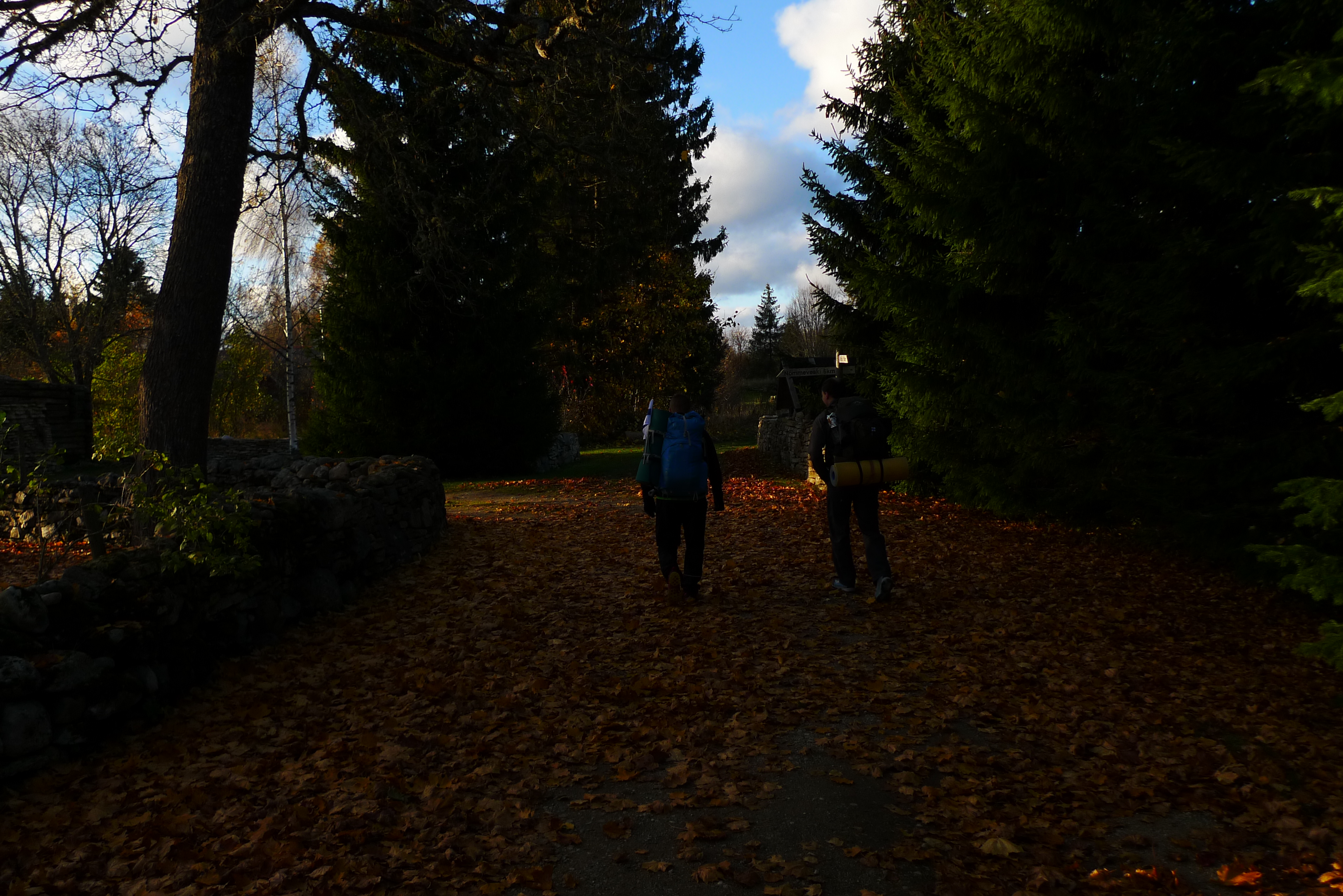 Illalla Nommeveskissa on kylmä, koska on lokakuu ja Jeesus vihaa meitä. Kohtaamme aiemmin samana päivänä Oandusta lähteneen miehen, joka väittää kävelevänsä koko 370 km:n reitin viikossa, 60 km/päivä. Mies on jäänyt samalle 25 km:n etapille (no jos huomenna 90 km sitten) ja hänellä on pötsi ulkona sekä kaikki vaatteet kuivumassa. Puulaavu jää triathlonistin käyttöön.