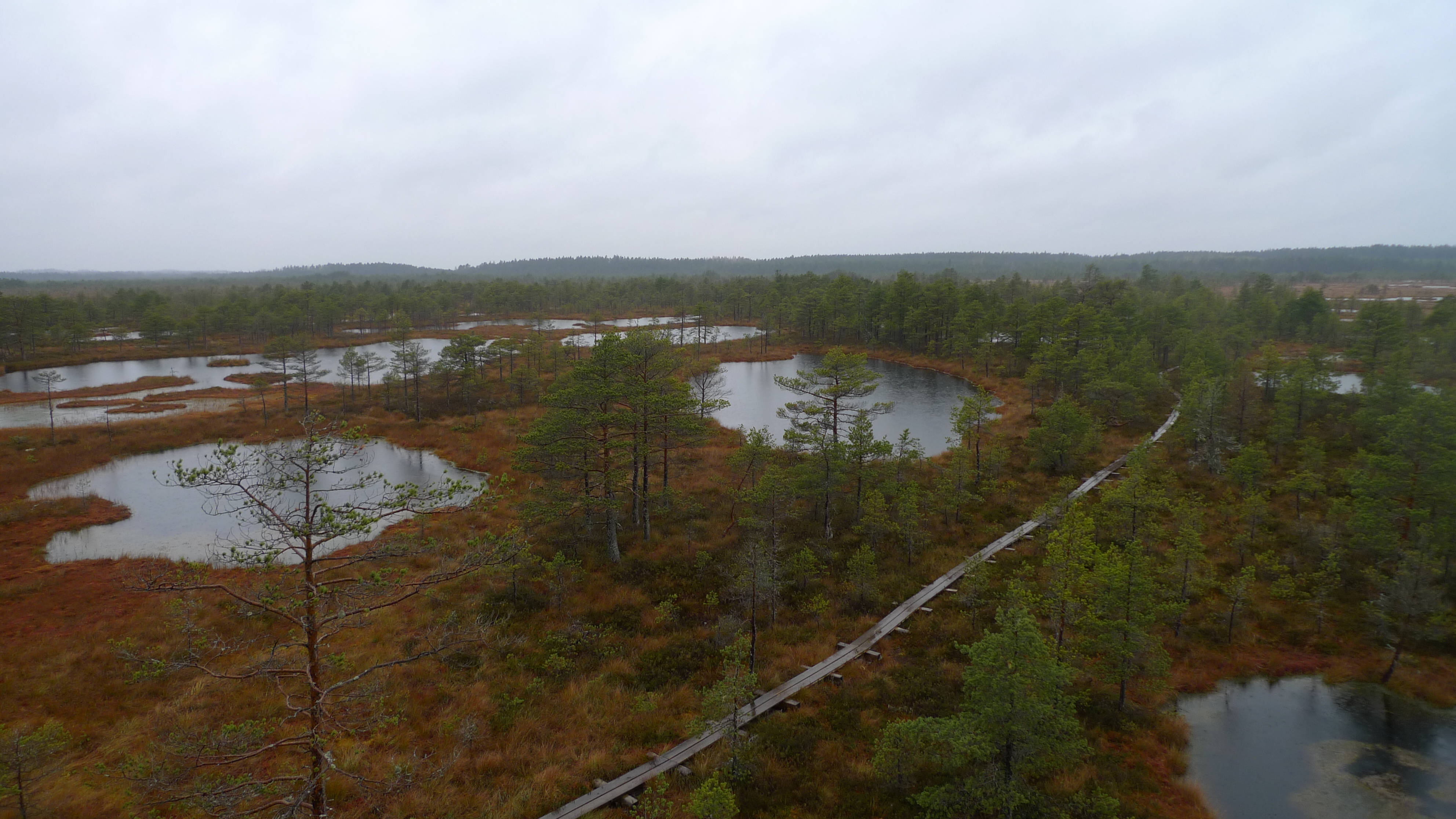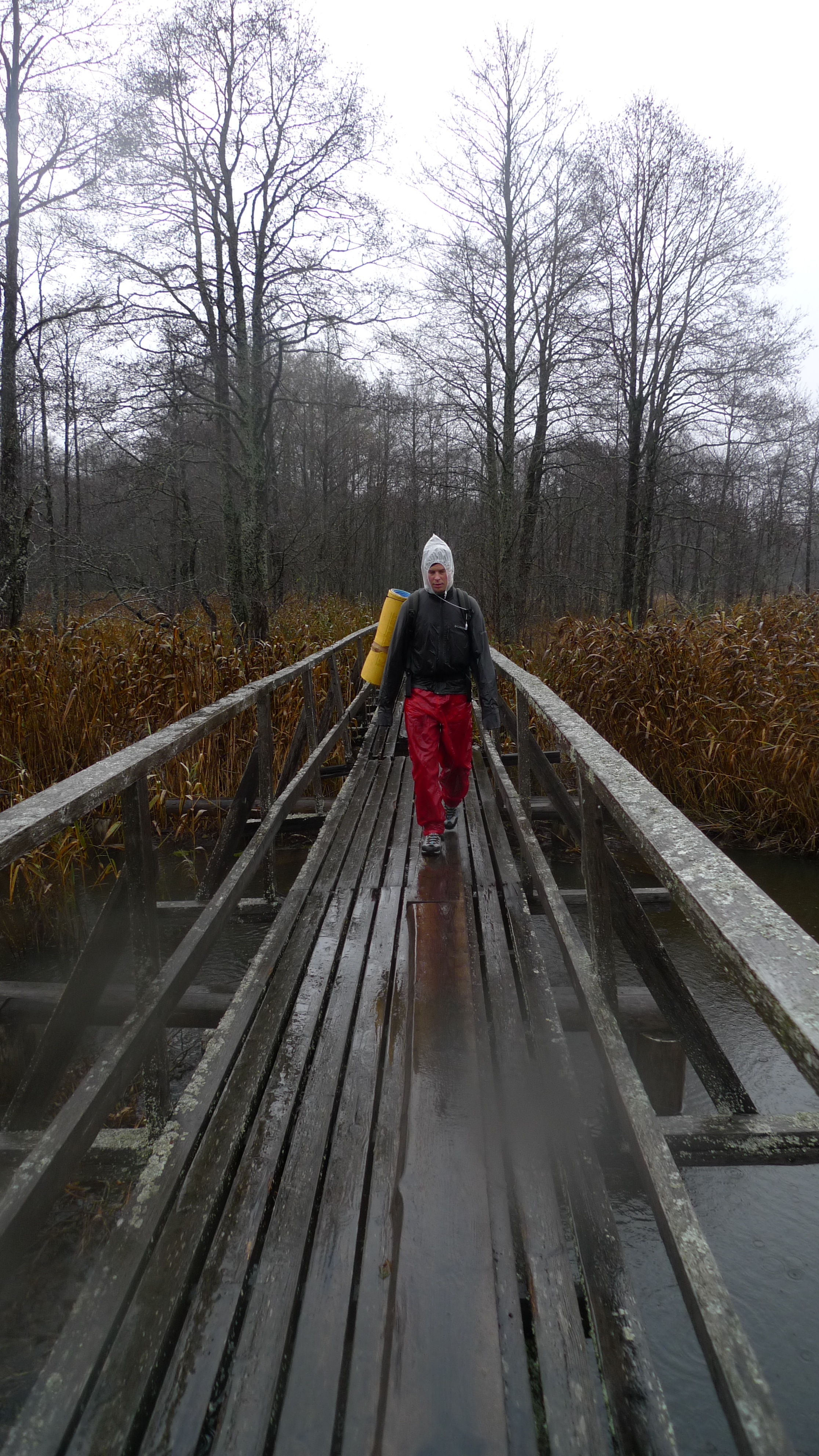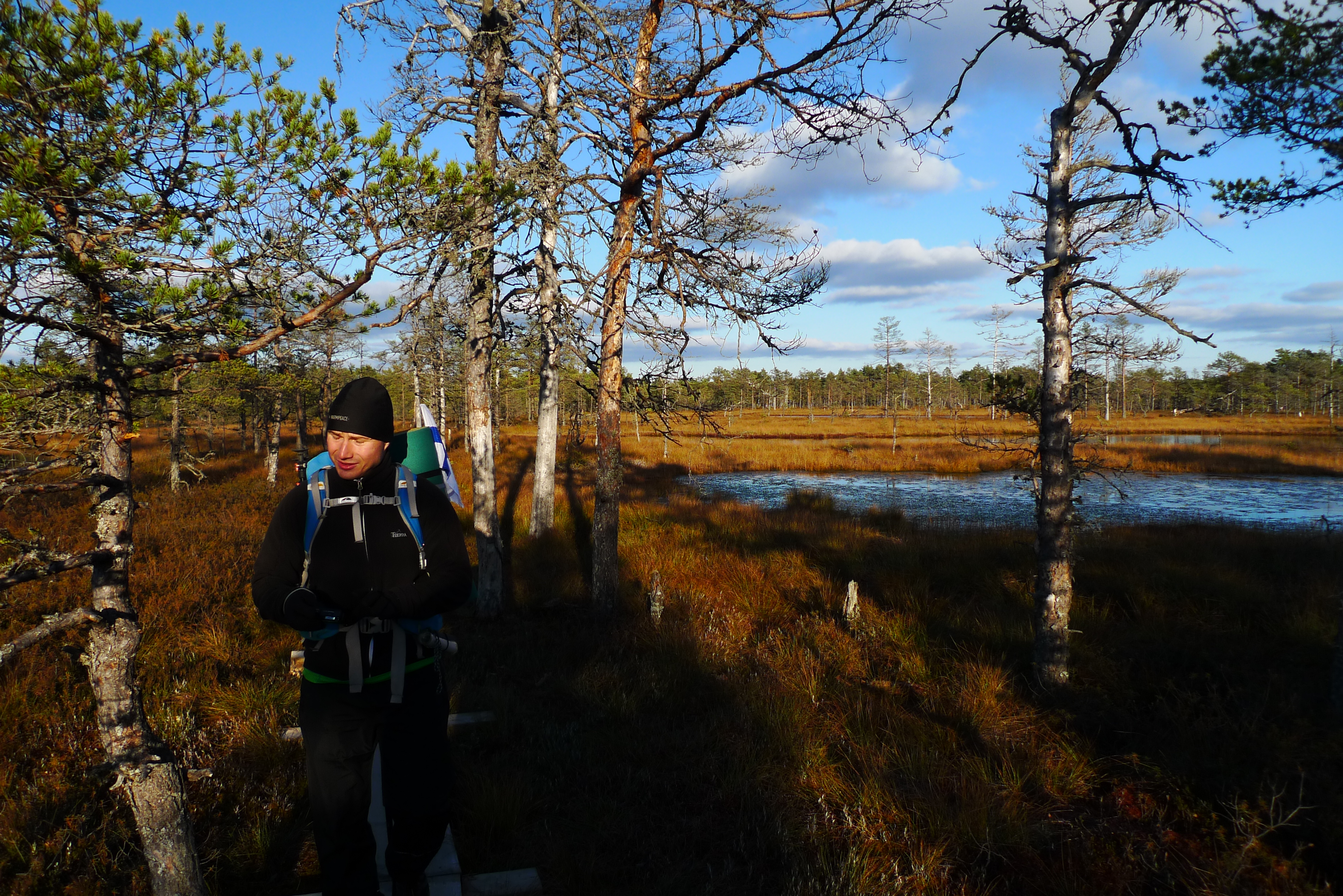 Sunnuntai: ei taaskaan päästä liikkeelle ennen kymmentä, sadettakin pukkaa. Matka alkaa jo vähän painaa, joten pusketaan lähinnä menemään. Tämän päivämatkan aikana tulee vastaan komeimmat suot.