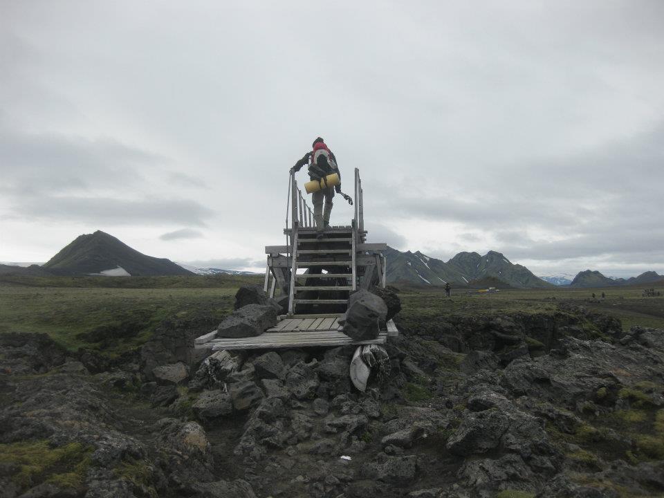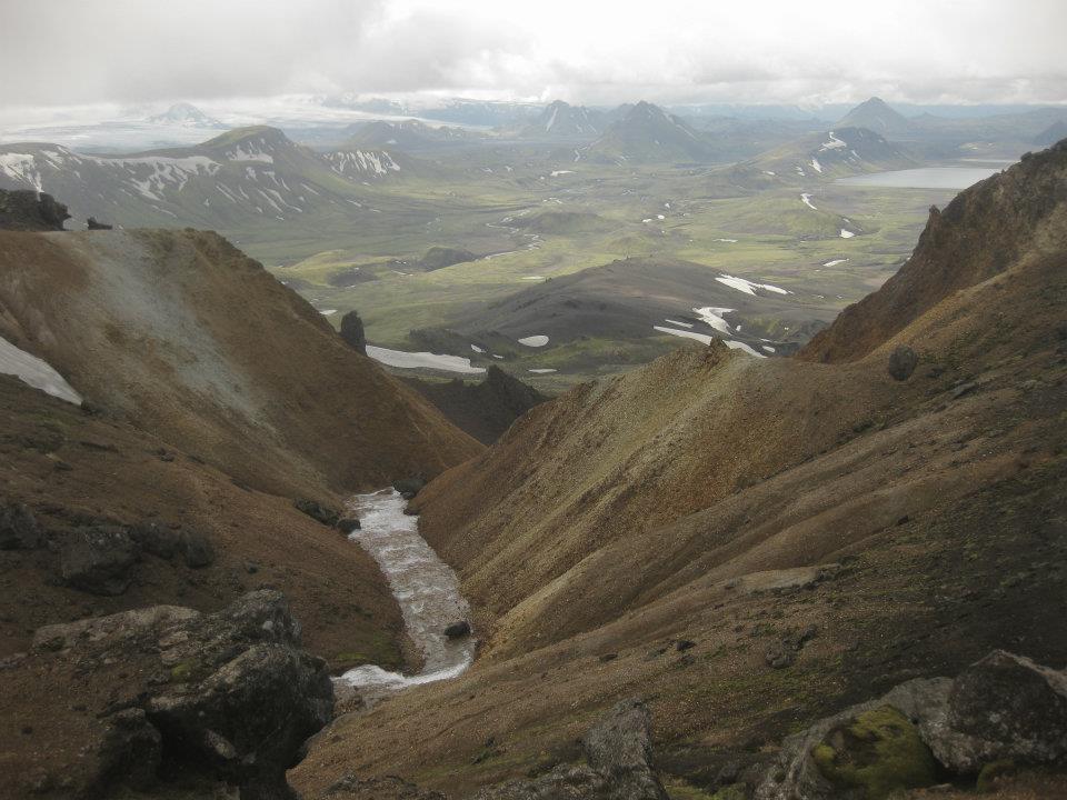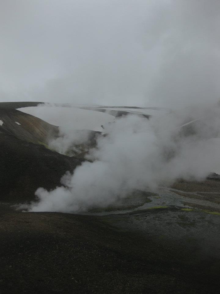 Yleisfiilikset: Loistava reitti! Matka on sopivan pitkä siihen, että tulee vaeltamisen tunnetta, mutta kuitenkin sen verran lyhyt, että homma ei mene kamppailuksi. ”Geografia” on jotain ihan omanlaistaan. Värisokeanana olen vähän jäävi kommentoimaan, mutta paikan sävyt ovat kuppaisillakin silmillä hulppeat. Maasto vaihtelee lumisista ylämaista tuhkatasankoihin, ja tulivuoritohinat ovat lähes koko ajan läsnä. Ensimmäisenä päivänä onnistuin eksymään höyryävien lämpimien lähteiden keskelle sumuiseen laaksoon, jossa sekä maa että sammal olivat eri värisiä kuin niiden pitäisi olla. Toisena päivänä näkymä vuorelta joutsenjärvelle oli suoraan Sormusten herrasta. Kolmantena päivänä käveltiin kilometritolkulla tuhkatasangolla ja nähtiin Islannin Grand Canyon. Neljäntenä päivänä päästiin kaljalle. Yleisarvosana _b ++++