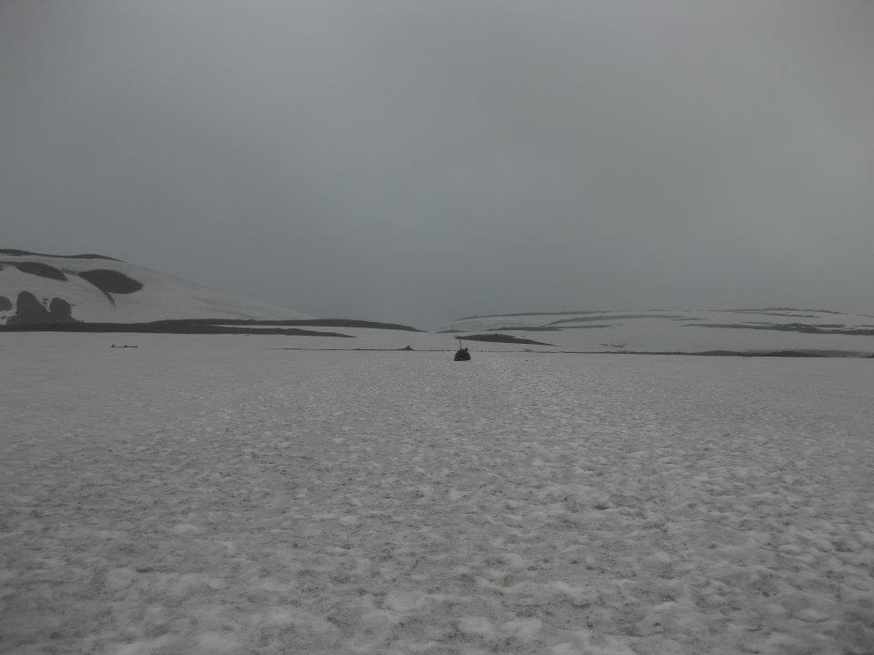 Matka etenee useista kohdista onttojen lumikuorikukkuloiden läpi kohti edessä näkyviä vuori/kukkuloita. Lumikannen läpi astumisten, lipsahtelun ja spelunkkauksen jälkeen päästään katselemaan taakse jätettyä Hraftinnuskerin majaa ja väliin jäänyttä kenttää mäeltä takapeilistä. Maisemat ovat taas kerran omaa luokkaansa, tällä kertaa maatuvan lehmän mallisia.