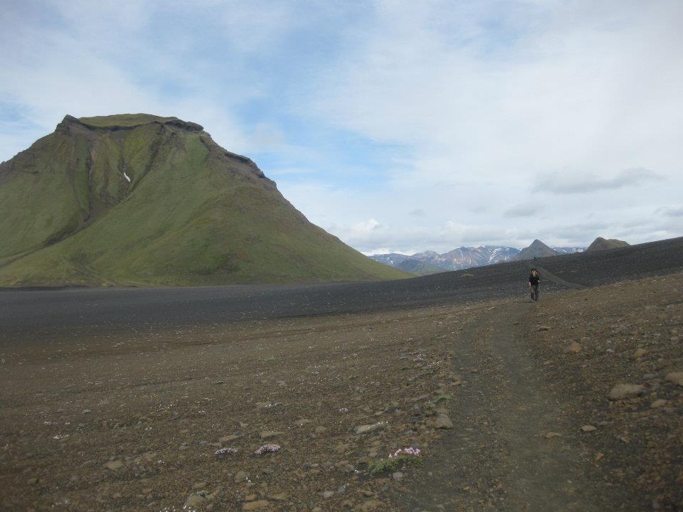 Jokien ylittely katkoo matkaa mukavasti, mutta päivästä jäävät päällimmäisenä mieleen pitkät pätkät mustilla tuhkatasangoilla, horisontissa pilkottava jäätikkö ja paikoittain oudon länkkärihenkiset vuoret.