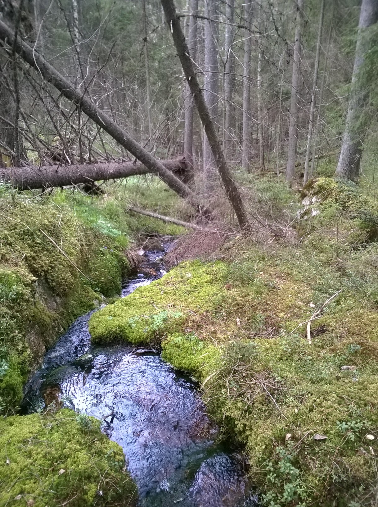 Lykkäsin fillarin polun varteen Kattilan metsikössä, nappasin satulalaukut niskan ympärille ja paarustelin laavulle hyvin merkattua ja hoidettua polkua. Reitille on ripusteltu kiitettävästi mustaoransseja ”timantteja”, jopa pari kylttiäkin mahtuu matkalle. Jos tykkää vesijohtovedestä enemmän kuin purotavarasta, Kattila on viimeinen paikka saada sellaista ennen laavua.