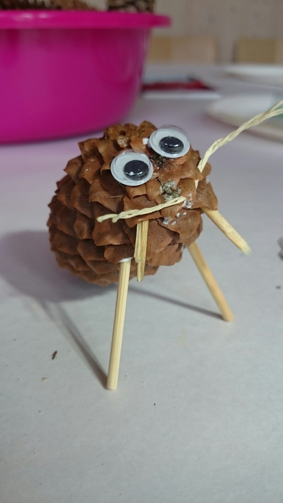 Olen kai joskus maininnut että olen vähän vanha. Tämä oli silti ensimmäinen yritykseni tehdä käpylehmä, tietysti päin helvettiä. Onneksi martat tajusivat että siitähän voi tehdä käpymursun ja antoivat vielä naruakin viiksiksi. Martat osaa.