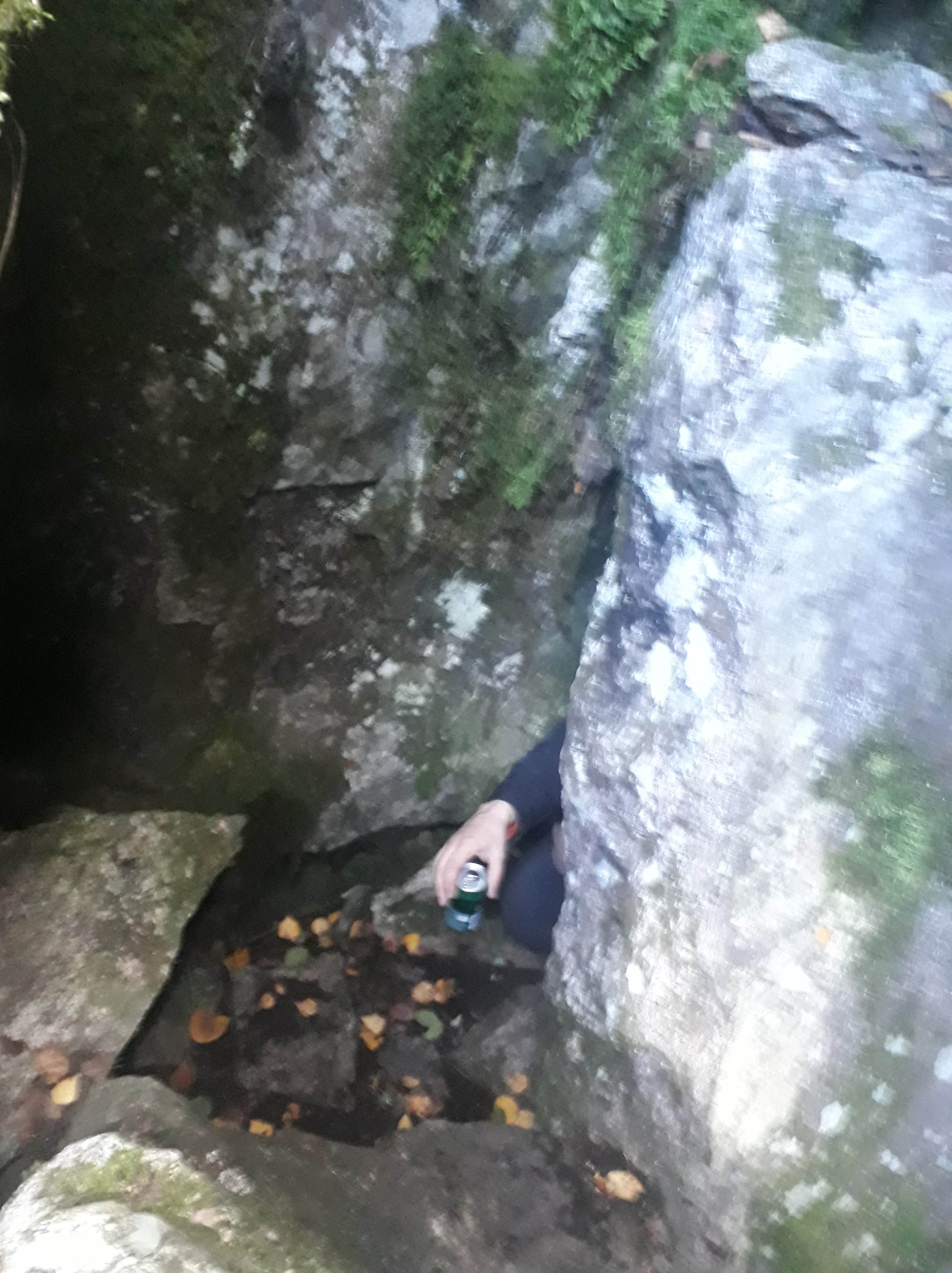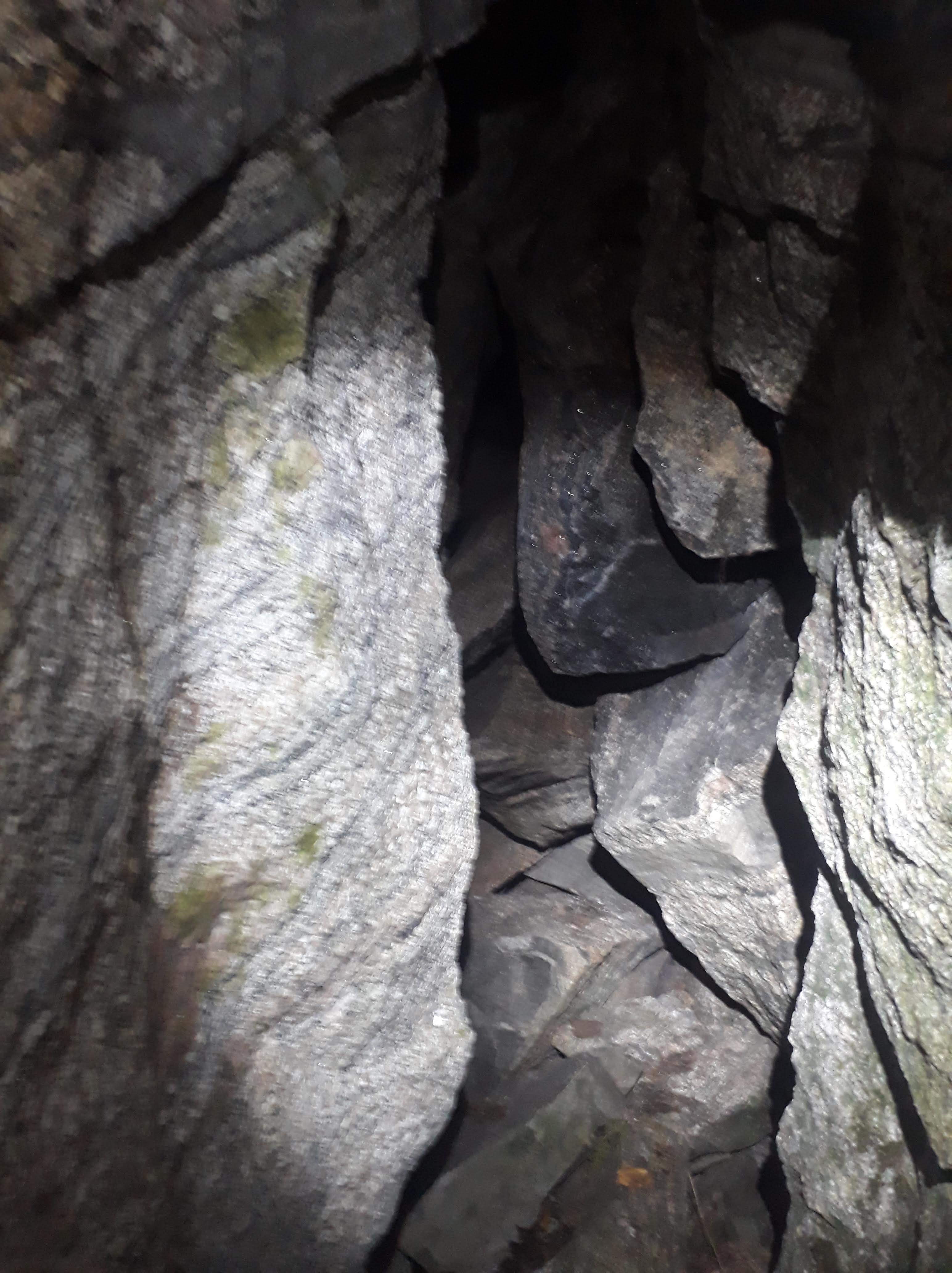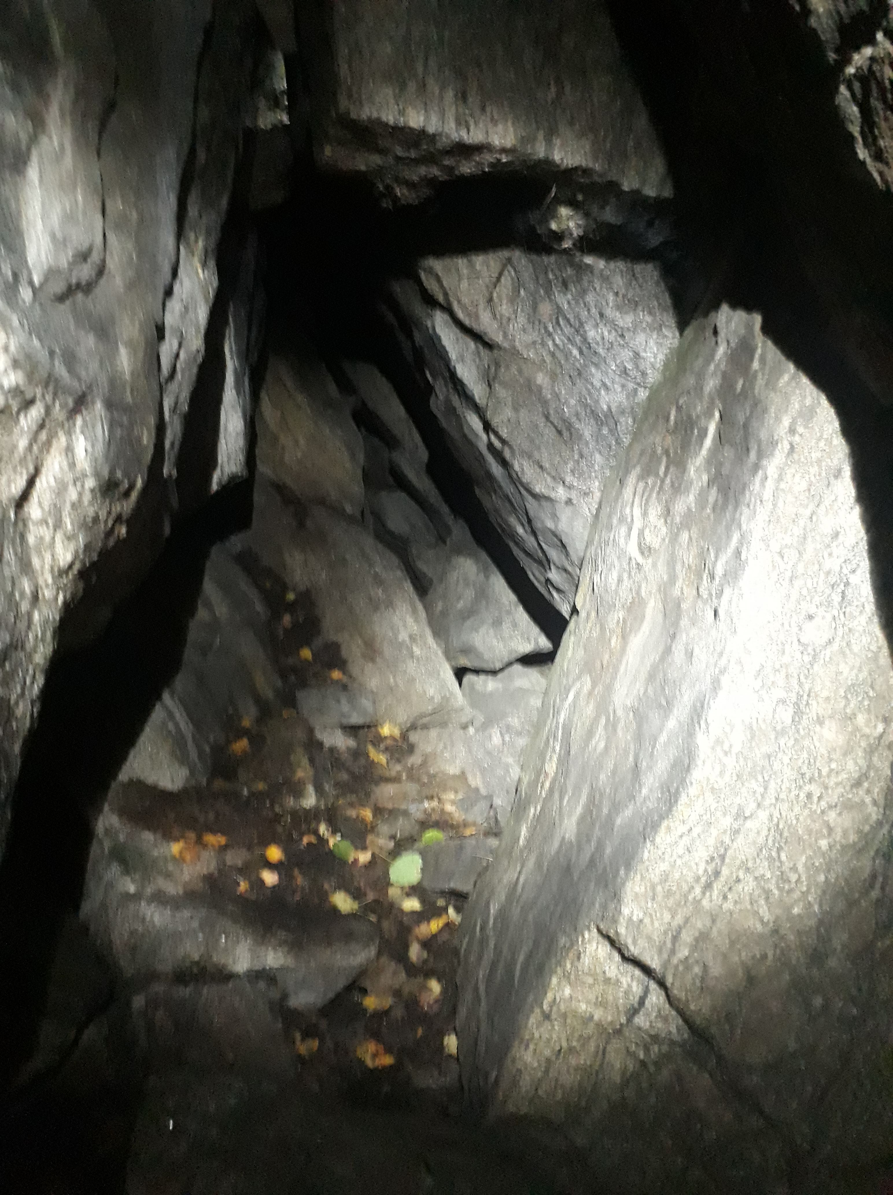 Luolan löytäminen on vähän kinkkistä, mutta siinä se on siinä lohkareikossa yhden laatan takana piilossa. Tai siis näin luulemme, voi olla että sen pienen löytämämme luolanpökäleen lisäksi jossain siellä piileskelee vielä isompi? No ainakin tämän jutun mukaan kyllä, eli olisi pitänyt vielä luuhata se joku neliönmuotoinen kolo läpi että olisi tärpännyt kunnolla.