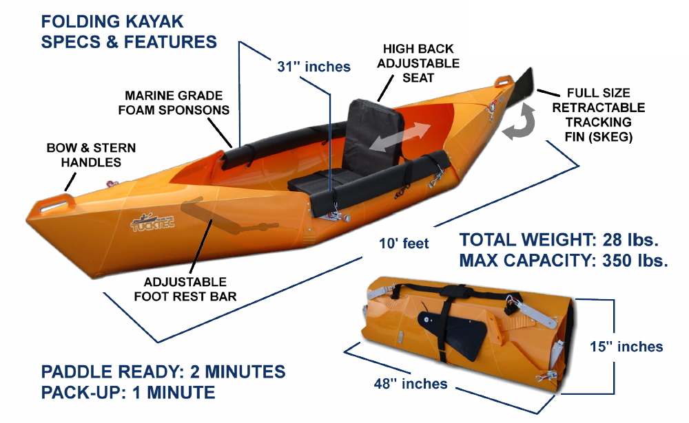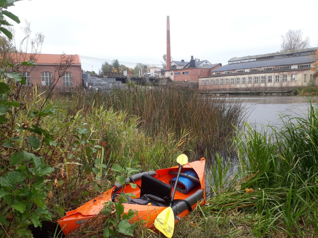Keväällä silmään osui kuitenkin Kickstarterissa halvempi vaihtoehto tuubiveneilyyn: Tucktec-niminen melkoisen pieni firma keräsi potkurahoitusta vaihtaakseen käyttämänsä matskun kierrätysmuoviin. Kampanjatarjouksena taiteltava kajakki melalla (ja kuivasäkillä!) ryyditettynä maksoi vain 249 dollaria kun lähti mukaan superaikaisena lintuna. Ei pöljempi!
