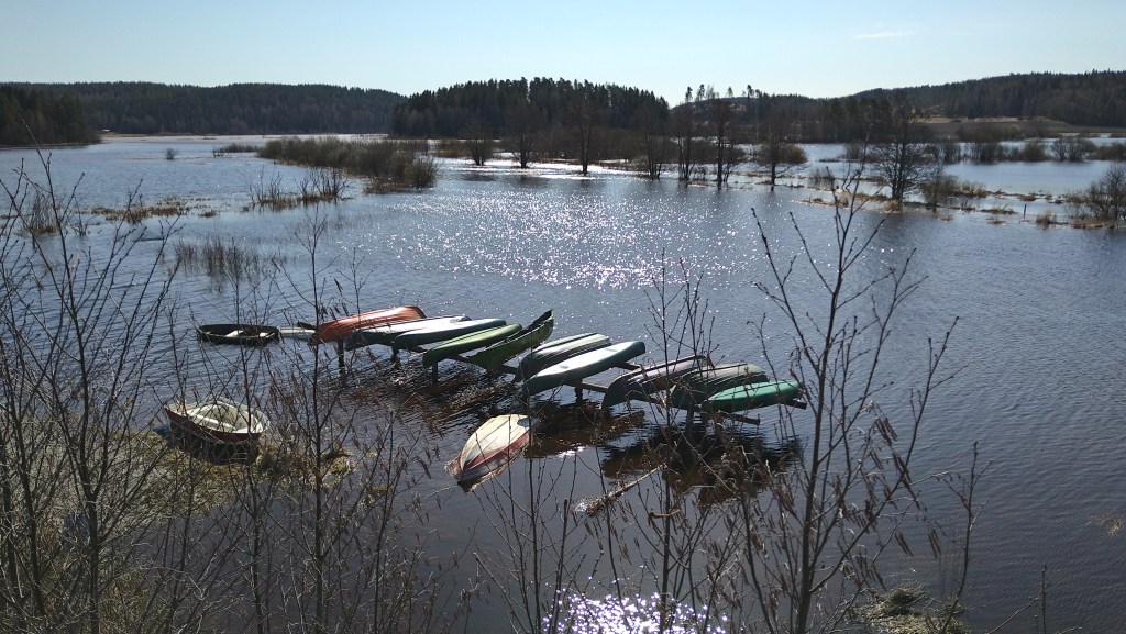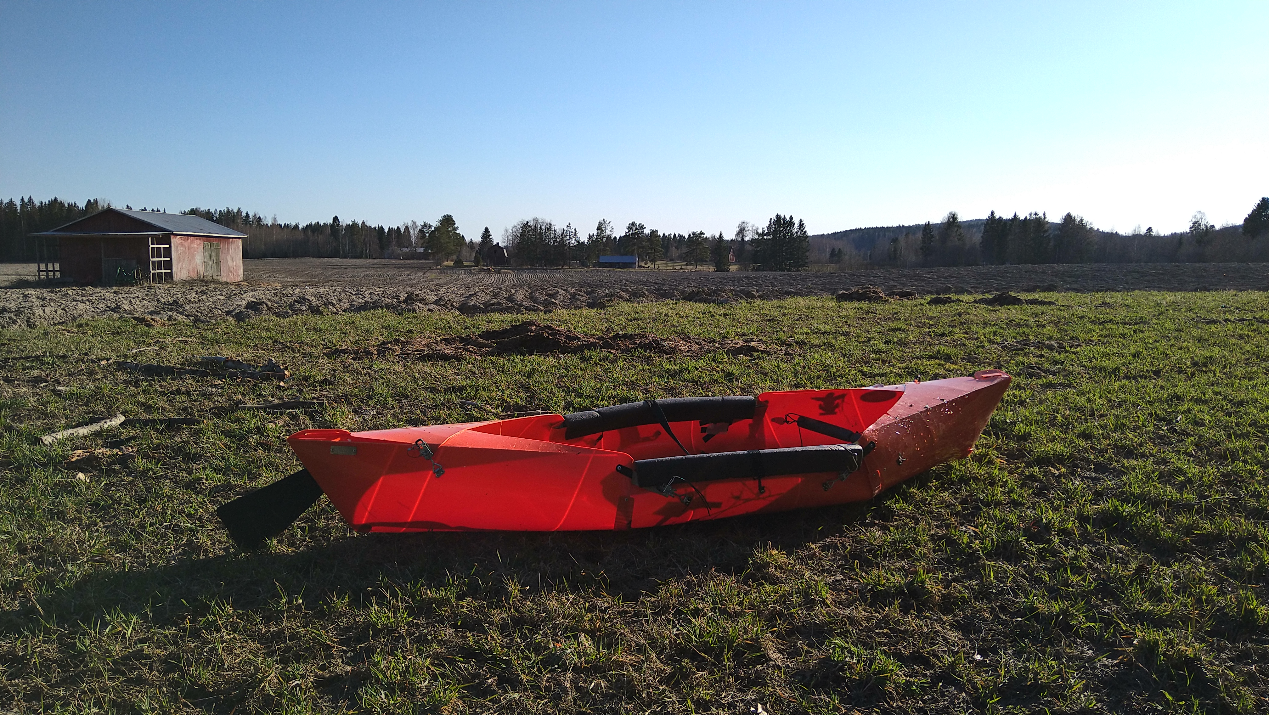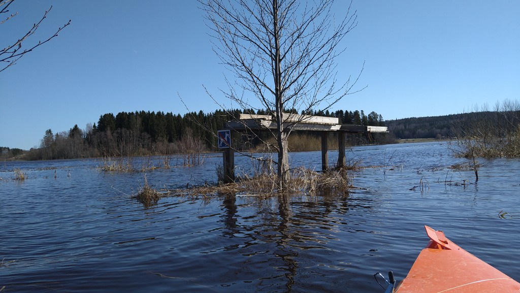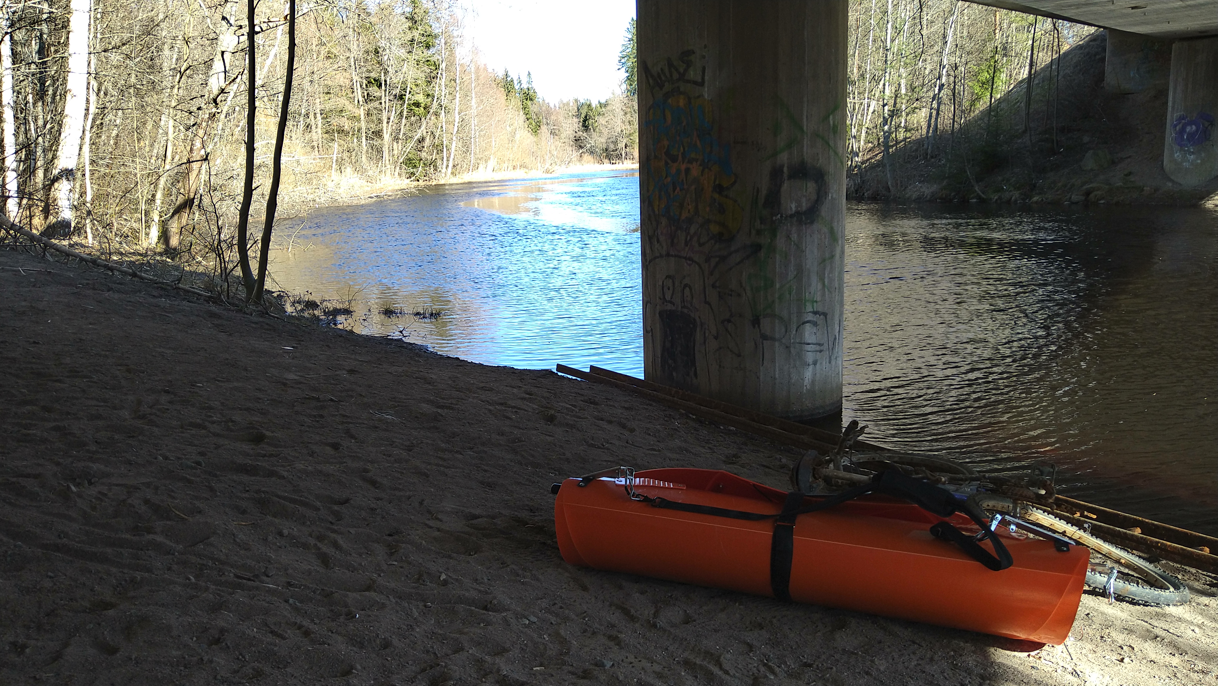 Varsin mainio laavukierros tulvajoella! Ainakin näin paljon veden aikaan joki on hyvinkin hyvin melottavissa, tosin pientä esterataa pukkaa. Uppotukkien yli vauhdilla poksauttelu opetti myös sen, että Tucktecin kiinnityssalpojen kiristykset kannattaa laittaa oikeille kohdille. Hoksasin jossain vaiheessa ensimmäisen päivän romurallia, että kummaltakin puolelta kajakkia oli muljahtanut auki yksi sivusalpa. Onneksi paatti ei kuitenkaan näytä levähtävän auki välittömästi tuollaisestakaan vahingosta, ja salpojen oikealla kiristyksellä siitäkin riesasta pitäisi päästä. Kuulemma sama voi tapahtua uppotukkipaukuttelun lisäksi myös kovassa aallokossa, tosin kovaan aallokkoon tuksulla ei ymmärtääkseni pitäisi mennäkään.