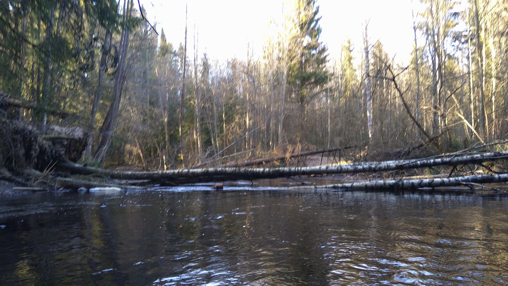 Jossain vaiheessa puunrunkoa ylittäessä sen rannan puoleisesta oksistosta kuului niin paljon rytinää ja napsuntaa jne. tohinaa että kuulostikin jopa majavan kokoiselta elukalta.