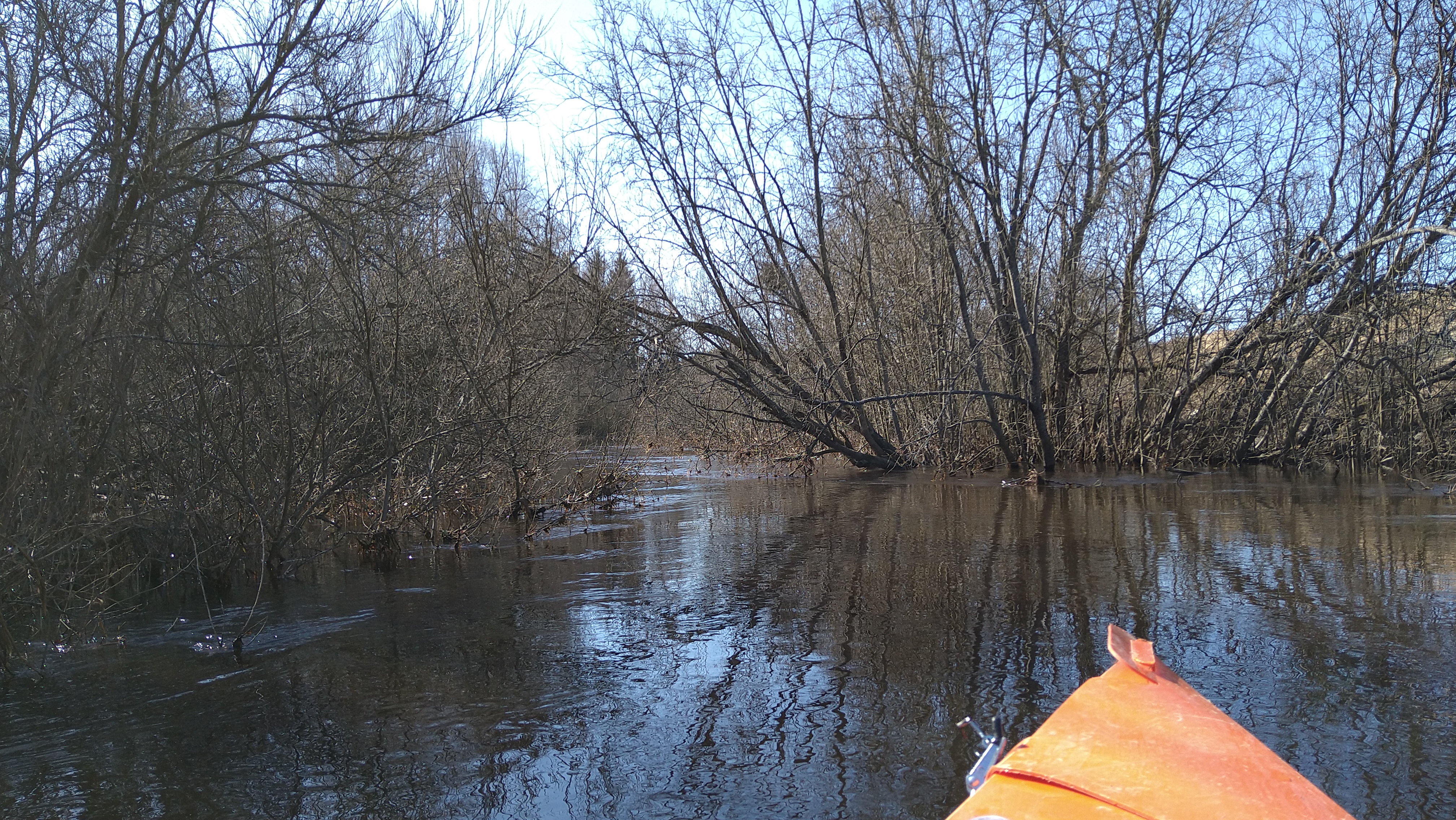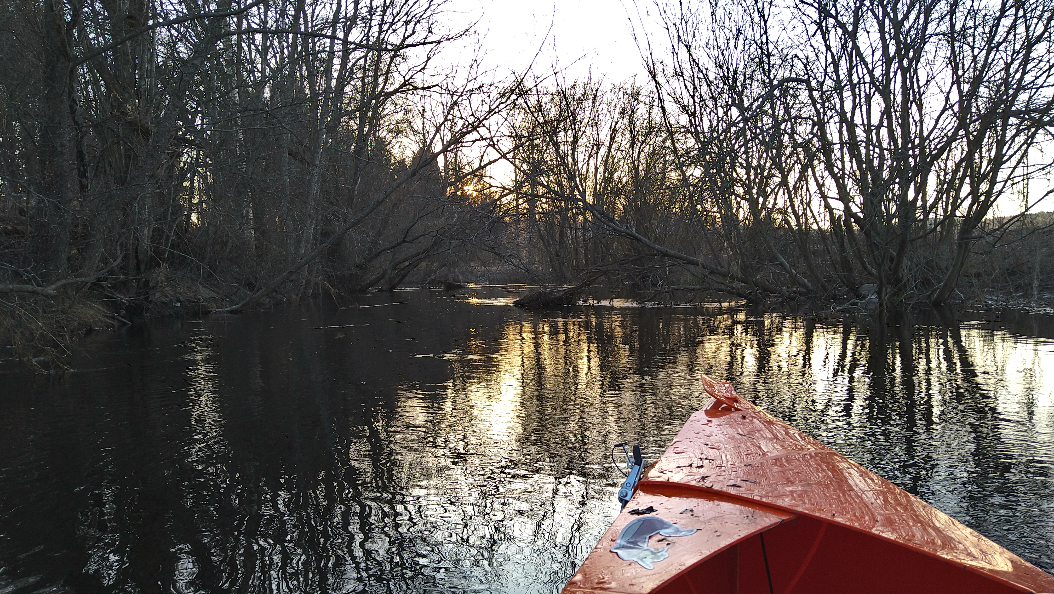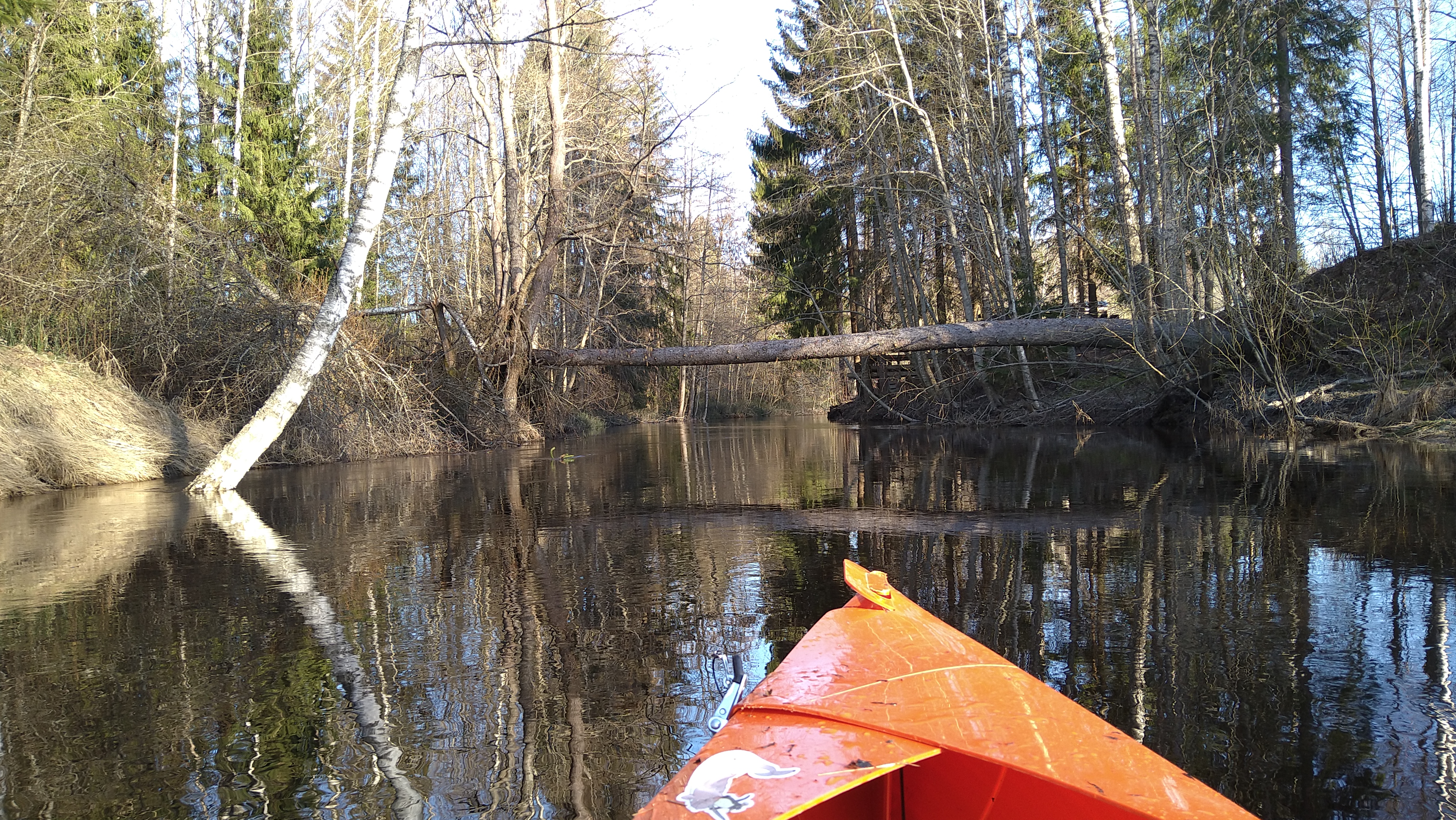 Talvilomalle huhtikuun puolivälissä osui mainiosti kevään ensimmäiset lämpimät päivät, joten oli mainio tilaisuus tonkia Tucktec varastosta ja lähteä kauden ensimmäiselle melonnalle. Kohteeksi vaihtui viime hetkessä Kymijoen sijaan Vanjoki, koska jälkimmäinen tuntui toimivammalta tulva-ajan kohteelta: Kymijoelle sitten kun vesi on lämpimämpää ja naaraaja mukana.