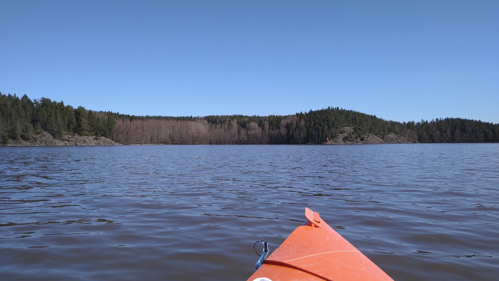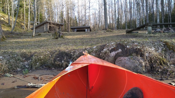 Puumannilta piti kirmata sitten vielä niemen ympäri tämän yön majapaikkaan Rysätarhalle. Matkaa kertyi jälkikäteen tarkistaessa 5 km vesiteitse ja aaltojakin pentele pukkasi, joten jos Puumannilla hapottelee niin oikaisu maan kautta saattaa olla jopa peliliike.
