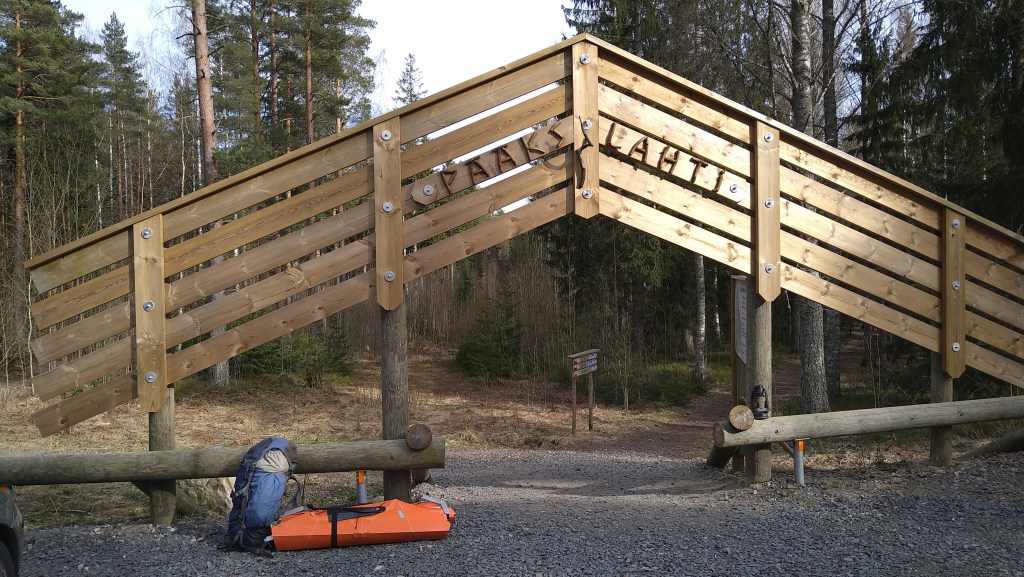 Massakosken jälkeen voisi siis jo tuutata melontavehkeen veteen, mutta mitään priimaa laskupaikkaa ei osunut silmään ja luontopolut olivat niin miellyttäviä talsia, että jatkoin Pitkälänkosken laavulle asti. Siellä onkin erinomainen pieni tyynen veden ”satama”, josta pääsee helposti liikkeelle. Myös laavu itse on aikas makea.