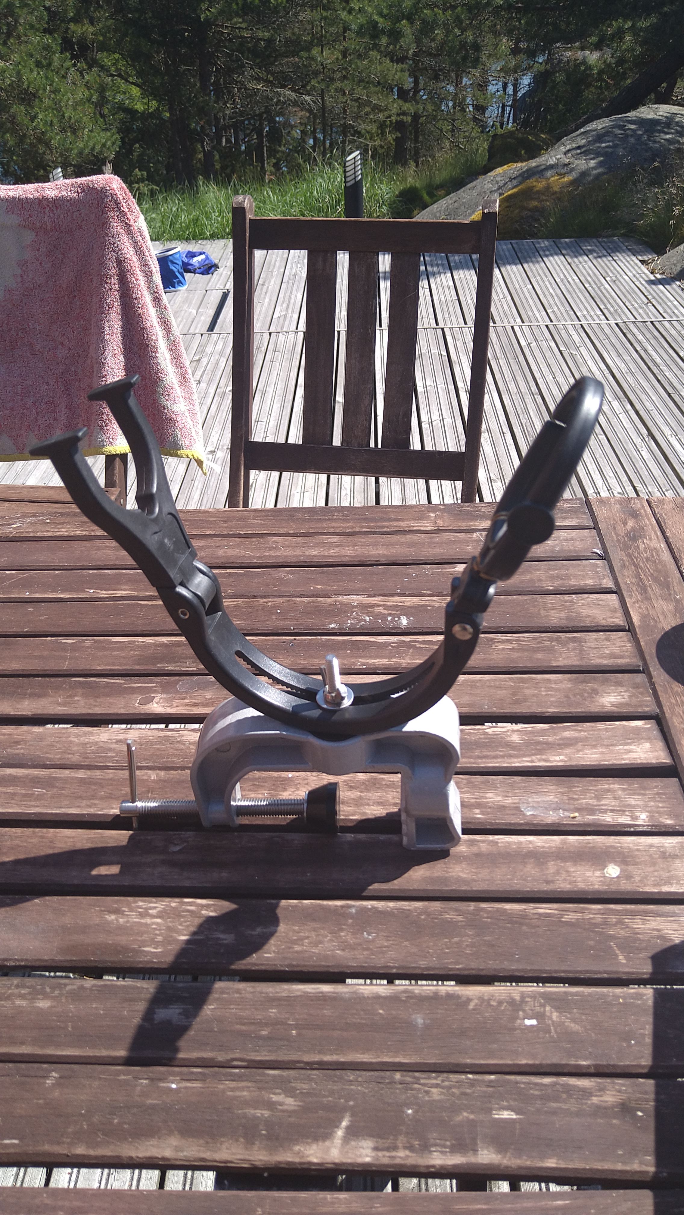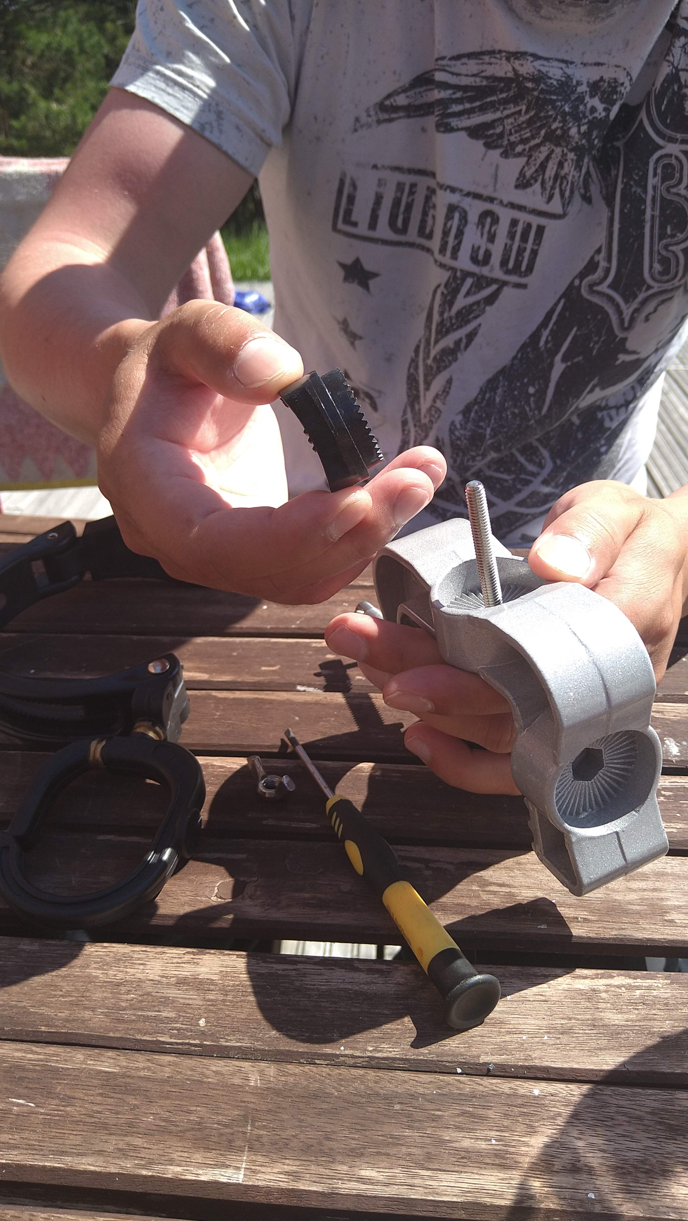 Vavanpidike eli teline pitää koota itse ainakin kahdesta liikkuvasta osista ja eksoottisista ruuveista, mutta onneksi askartelussa oli apuna metalli-Janne ja meemikortit. Koottu teline ruuvataan sitten puristimella kiinni laitaan. Vavan rännin asennon pystyy jopa valitsemaan kahdesta eri kiinnityspaikasta.