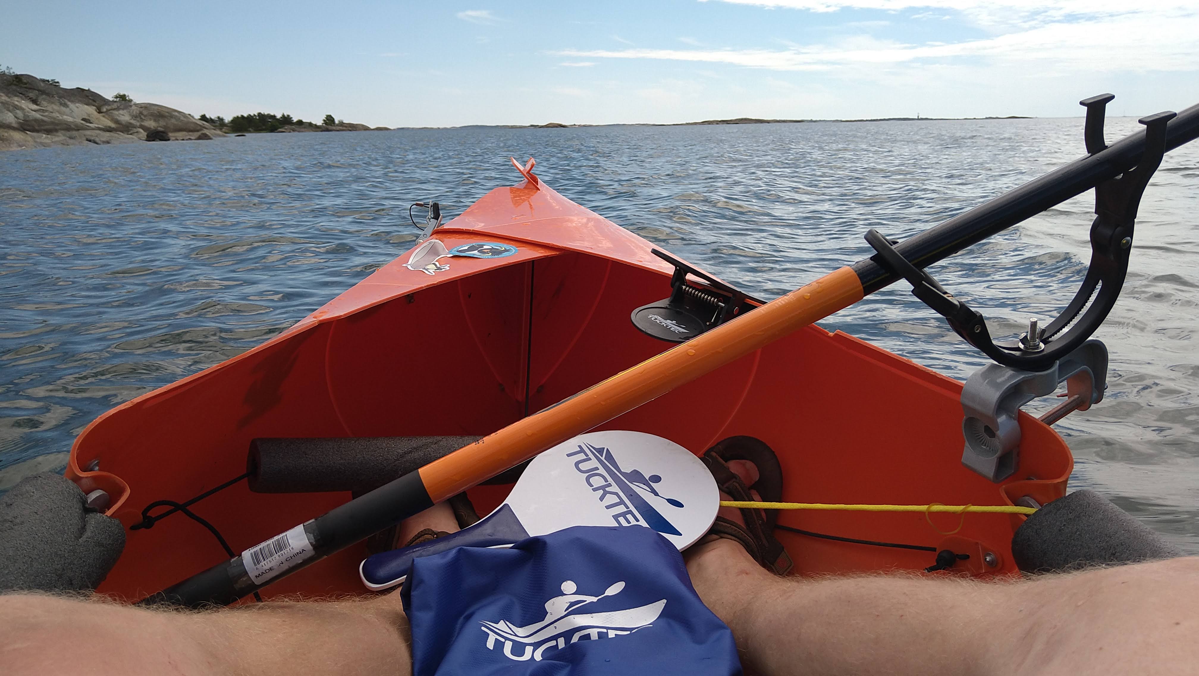 Viime vuonna tilasin Tucktecin kokoontaittuvan/taiteltavan/origamikajakin Kickstarter-kampanjasta, ja mukaan sai valita joitakin ekstroja. Otettiin tietysti kaikilla mausteilla, ja postissa saapui jossain vaiheessa myös erikseen ostettava kalastuspaketti. Sitä ei kai ole saatavilla normaalikaupasta, joten ehkäpä siitä saa keräilyharvinaisuuden.