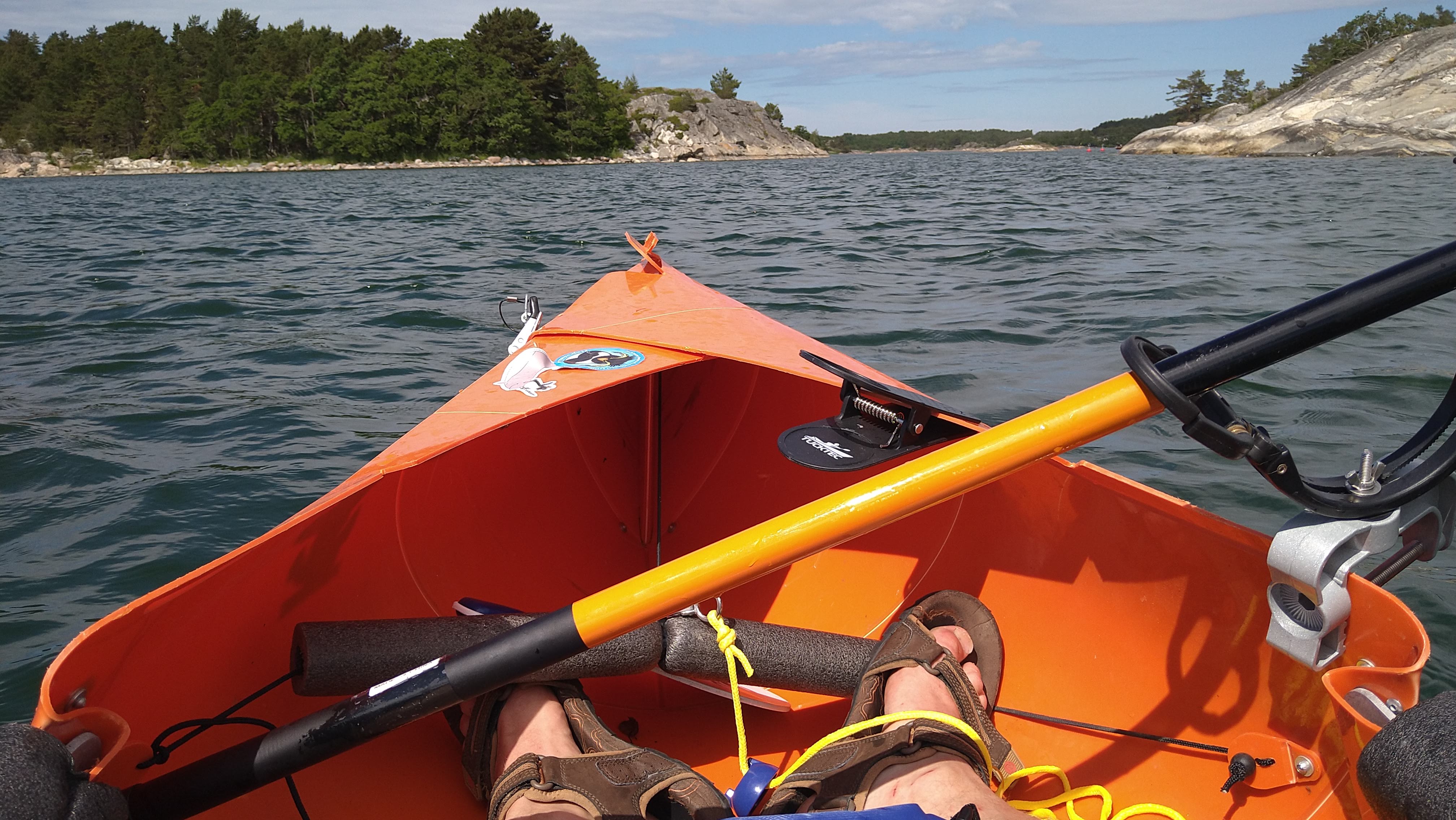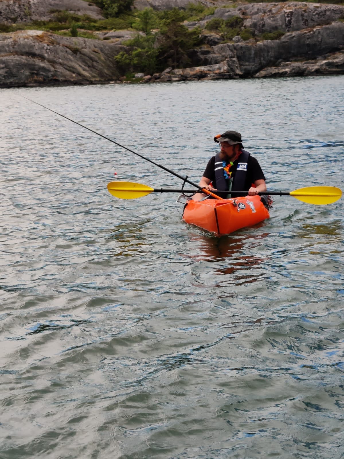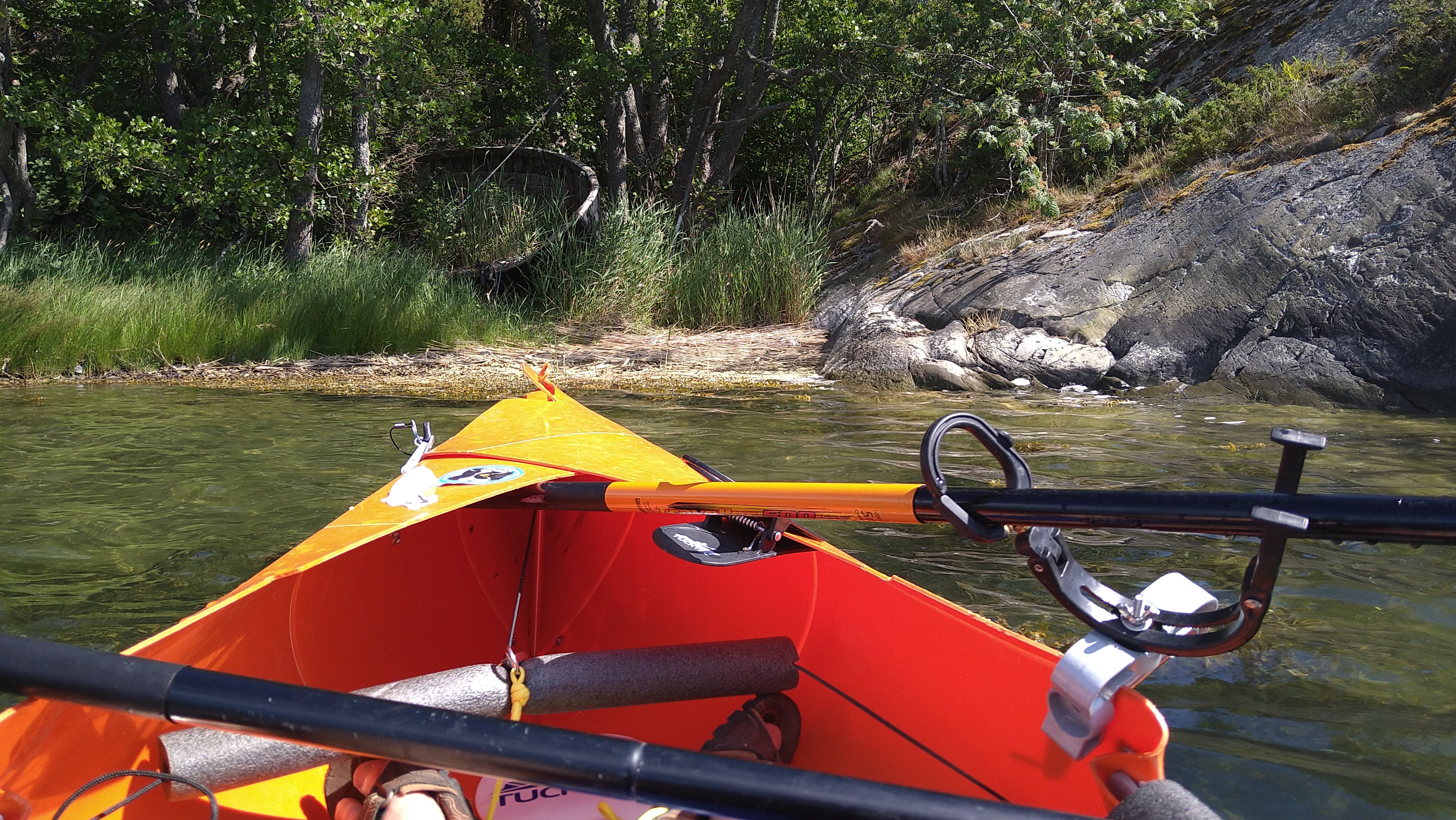 Pelkällä mato-ongella sutiessa en päässyt kalan saamisen makuun, ja kelaton vapa ei asettunut telineisiin kovinkaan optimaalisen hyvin juntalle. Vavan päädyn sai kuitenkin jumitettua suht ookoo kannen laidan alle, eikä mato-onkikaan ainakaan putoillut kyydistä.