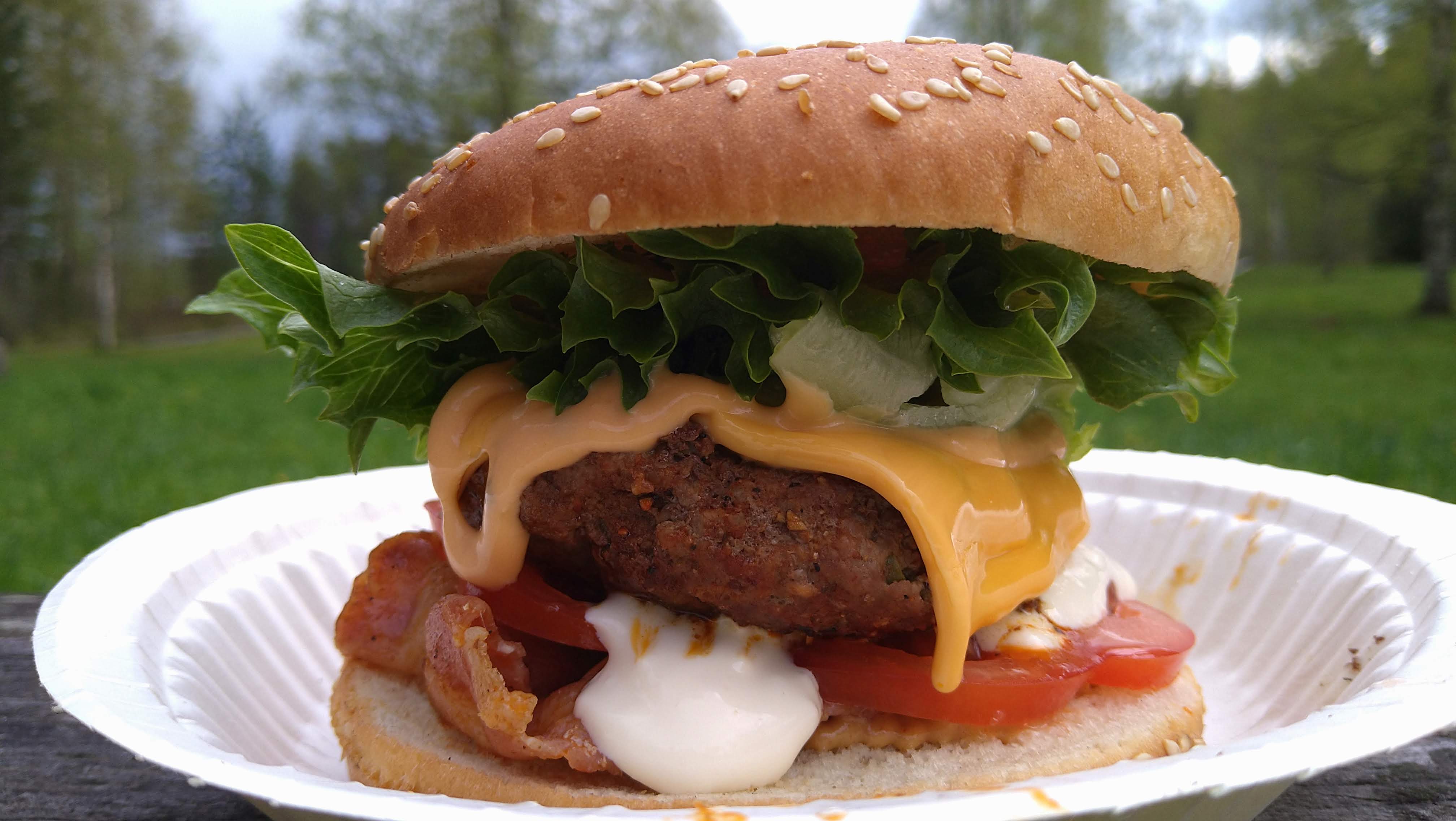Visiitillä satoi sen verran että nuotiopaikkaan piti ympätä tarppi katoksi, mutta keskimääräistä ökympien burgerien hinkkausta vesi ei tietenkään hidastanut.