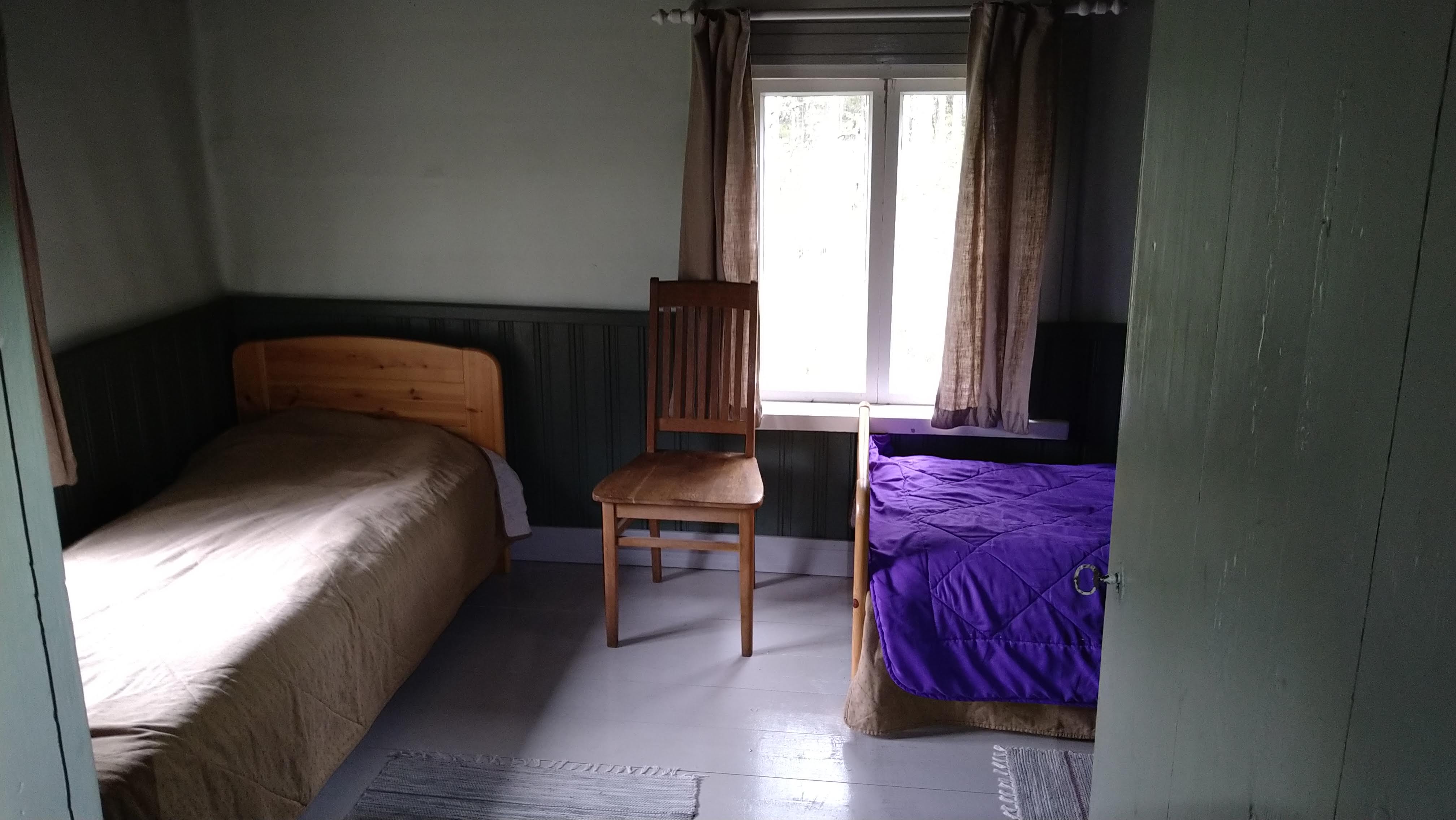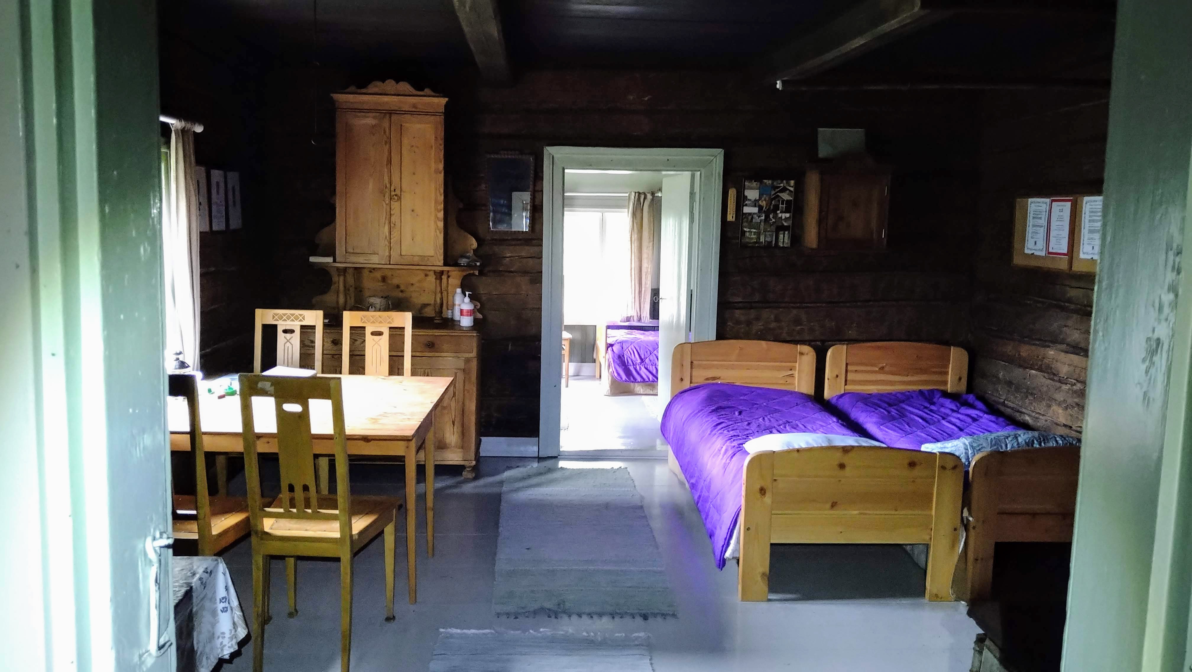 Sisälle mahtuu nukkumaan neljä henkeä sänkyihin ja lattialle voisi tietty levittäytyä pari lisääkin, ja jos tungos muodostuu jäätäväksi niin eteisen päällä on jonkinmoinen parvi, jonka pölyttämällä saisi puisia lattianeliöitä vielä jokuselle leiripatjan käyttäjälle. Puita: on.