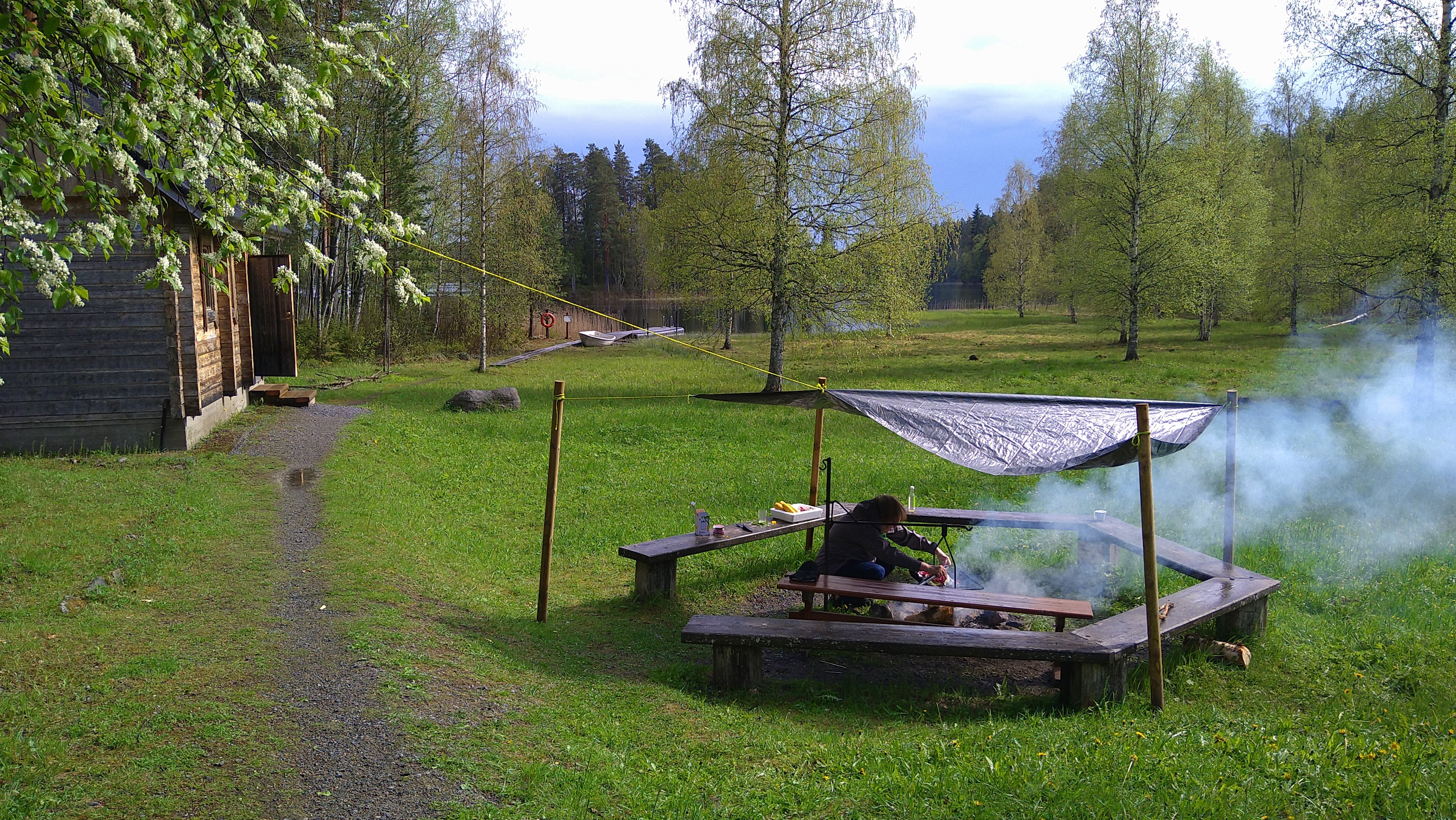 Visiitillä satoi sen verran että nuotiopaikkaan piti ympätä tarppi katoksi, mutta keskimääräistä ökympien burgerien hinkkausta vesi ei tietenkään hidastanut.