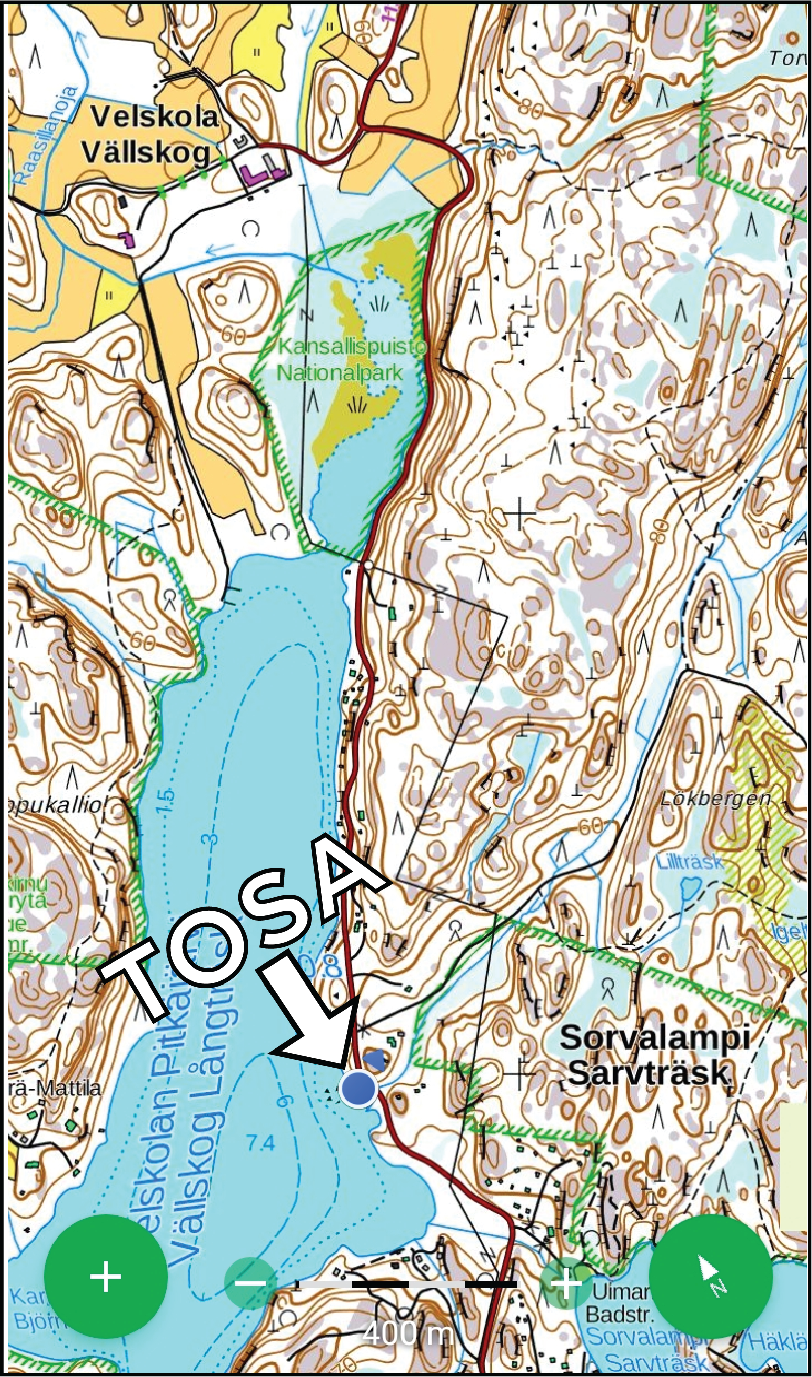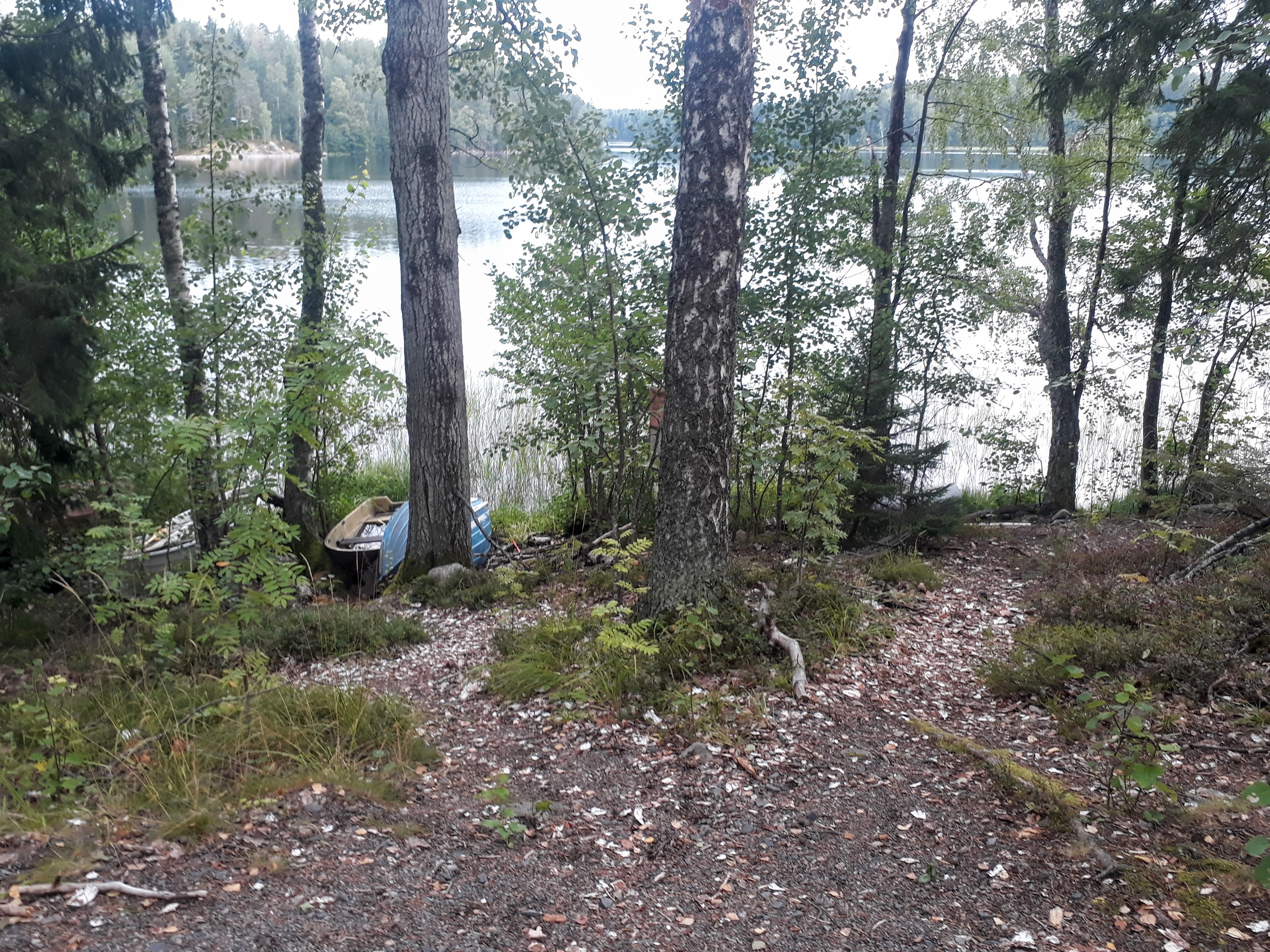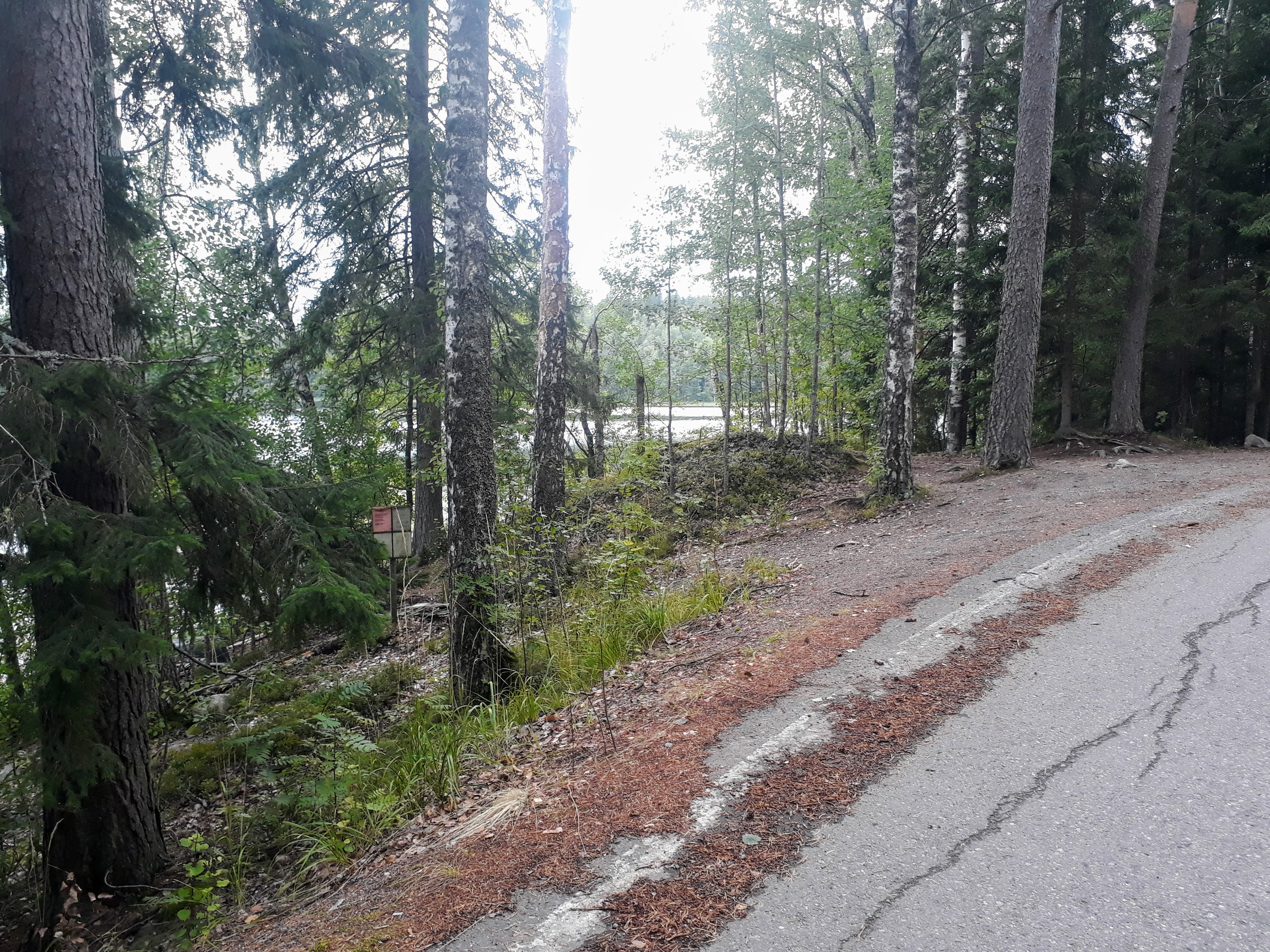 Ennen tuon löytymistä ehdin käydä myös toteamassa että Velskolan kurssikeskuksen ranta (punainen ruksi blogauksen pääkuvassa) on ainakin kylttien mukaan yksityisaluetta ja sinne vievä hiekkatie on blokattu autoilta. Siellä oli myös monta kajakkia telineessä joten ehkäpä siitä pääsee jollain konstilla luvan kanssa liikkeelle firman härveleillä.