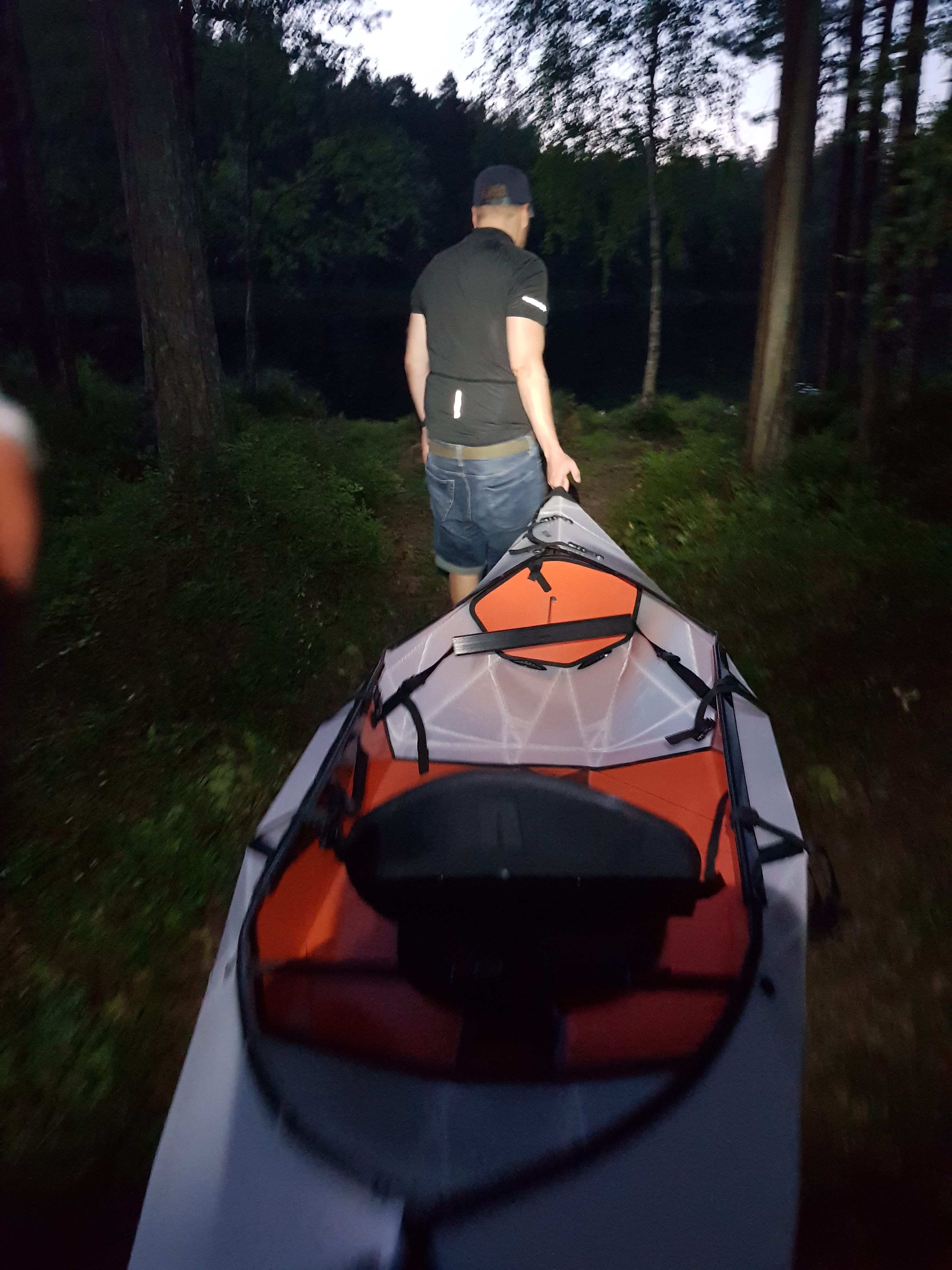Inletissä on myös se plussa Tuckteciin nähden, että sillä on neljänneksen vähemmän painoa, 9 kg vs. tuksun 12,7 kg. Vedessä se tuntuisi liikkuvan eri sulavasti, ainakin ilman lastia. Plussaosastoon pitää varmaan lisätä myös se, että onhan se aika paljon tyylikkäämmän näköinen kotilo kuin tuksu. Kokoaminen vaati Youtuben ohjevideon kelailua ja pausettelua useamman kerran, mutta palaset napsuvat kuitenkin paikalleen aika ikealoogisesti eikä juurikaan kiroiluttanut. Tosin tämä yksilö oli lainassa Hang Outdoorsilta eli varmaan jo jonkun kerran vuokrattu/demottu aiemmin, joten taitokset saattoi olla jo pehmitetty valmiiksi. Purkaminen oli melkoisesti tuskattomampaa kuin Tucktecin rullaus.