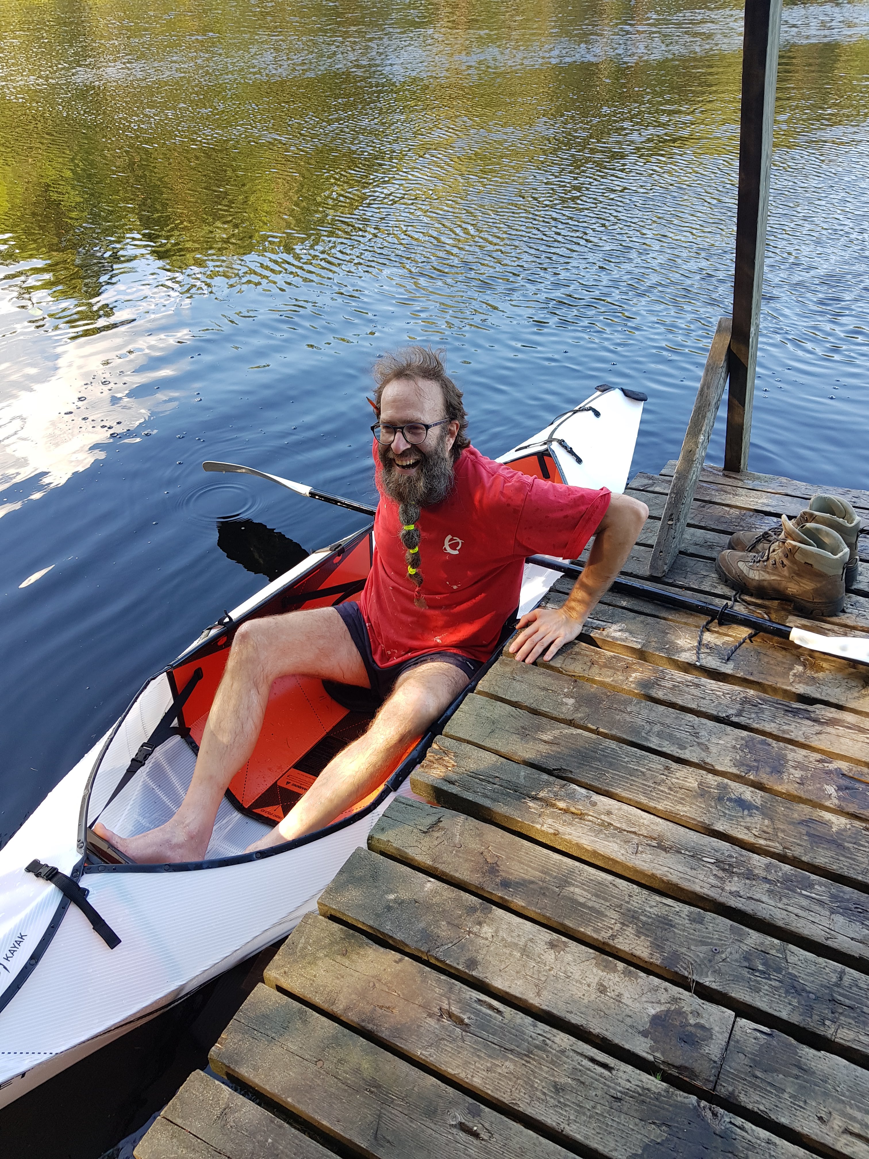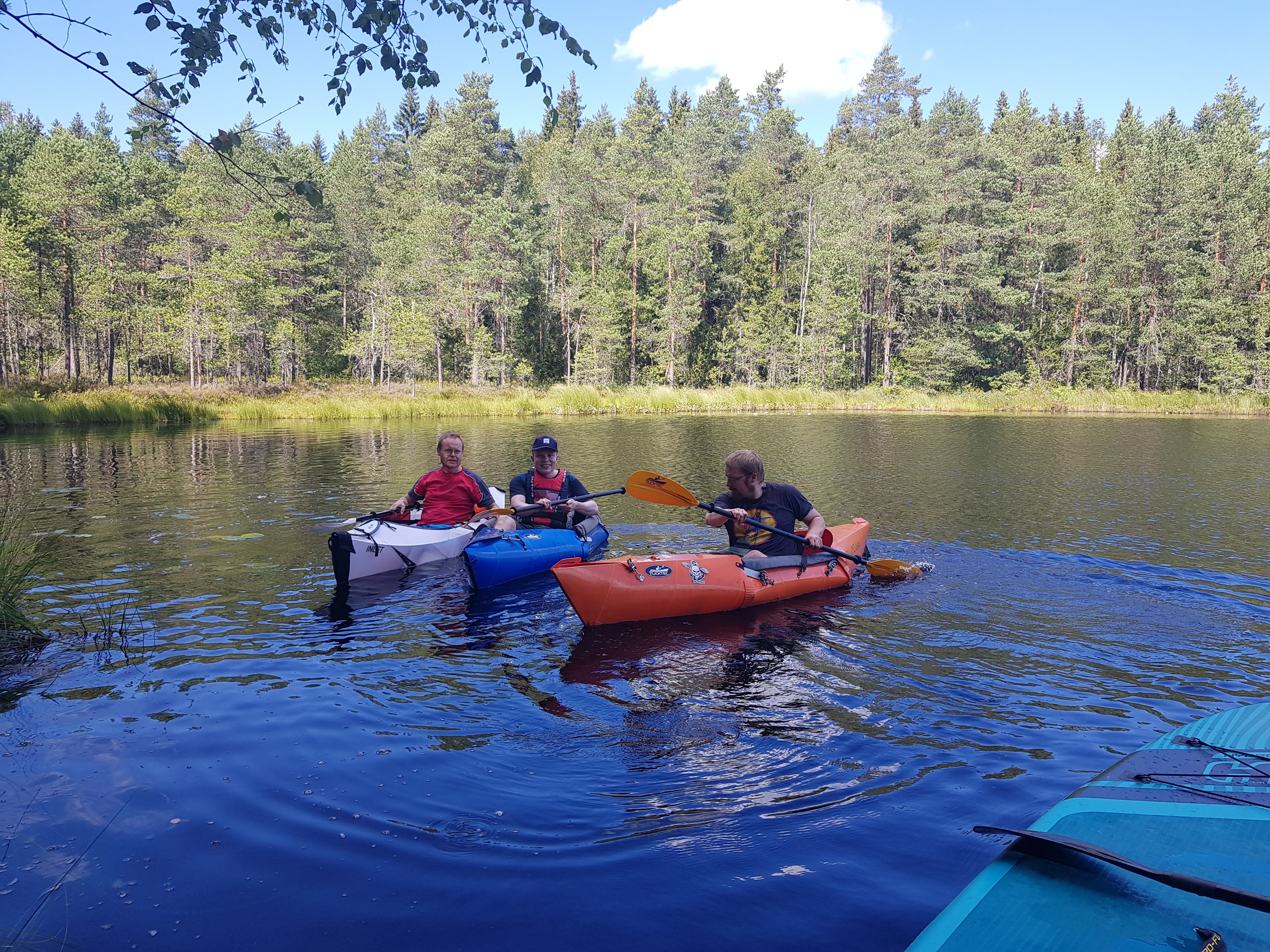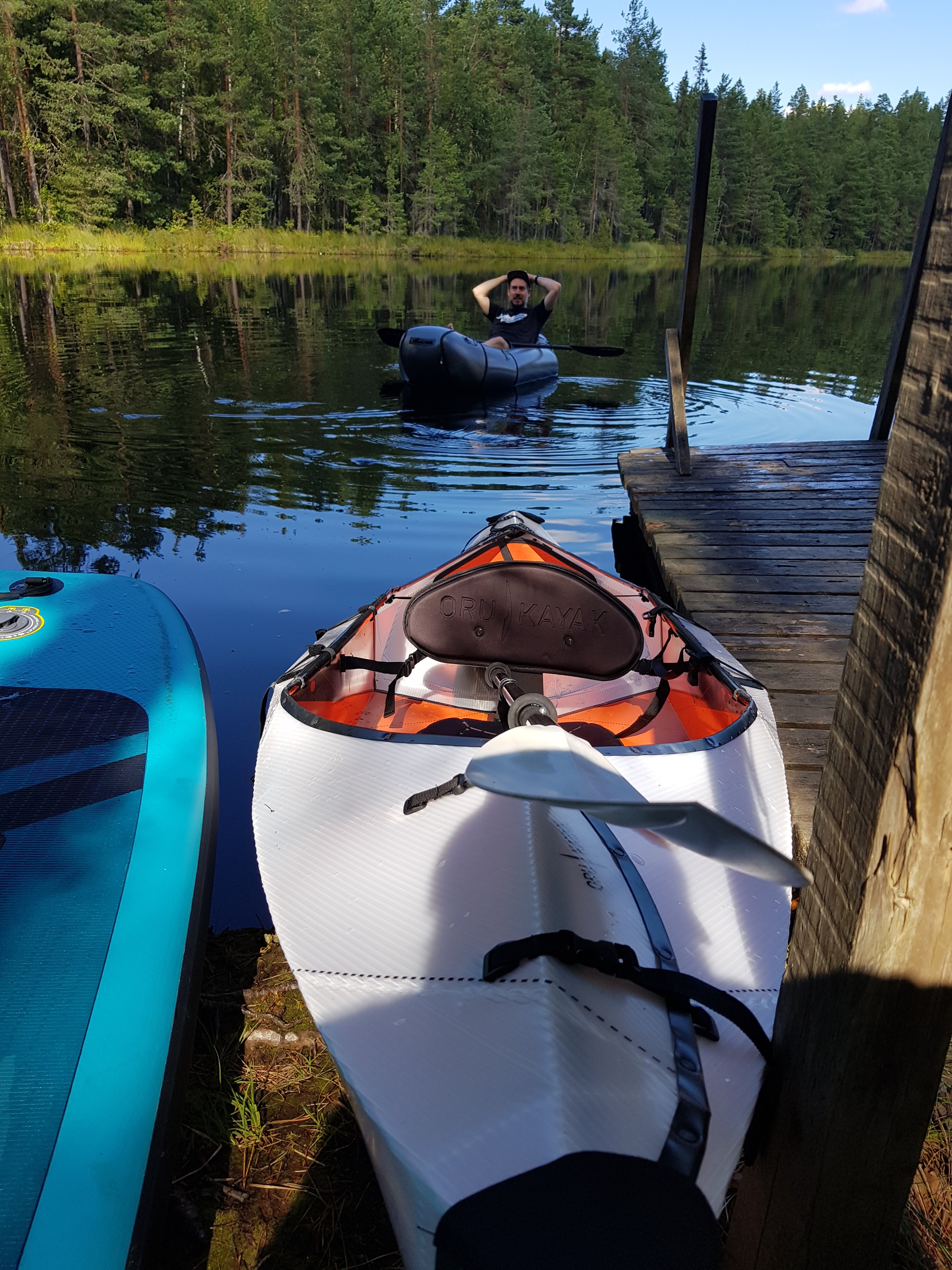 Pääsin vihdoin hypistelemään sitä toista kokoontaittuvaa kajakkia eli Orua! Omg. Helsingin Seudun Lapinkävijät järjesti männäviikonloppuna Karjakaivon majalla vesiretkipäivän, jossa testailtiin erilaisia kokoontaittuvia ja puhallettavia paatteja. Koska itse järjestin ja hyvä tuli, monet veneistä olivat eri vuosikerran Tucktecejä, mutta mukana oli myös suppilautaa ja Alpackaraftin packrafteja sekä sitten se Oru, tarkemmin Oru Inlet.