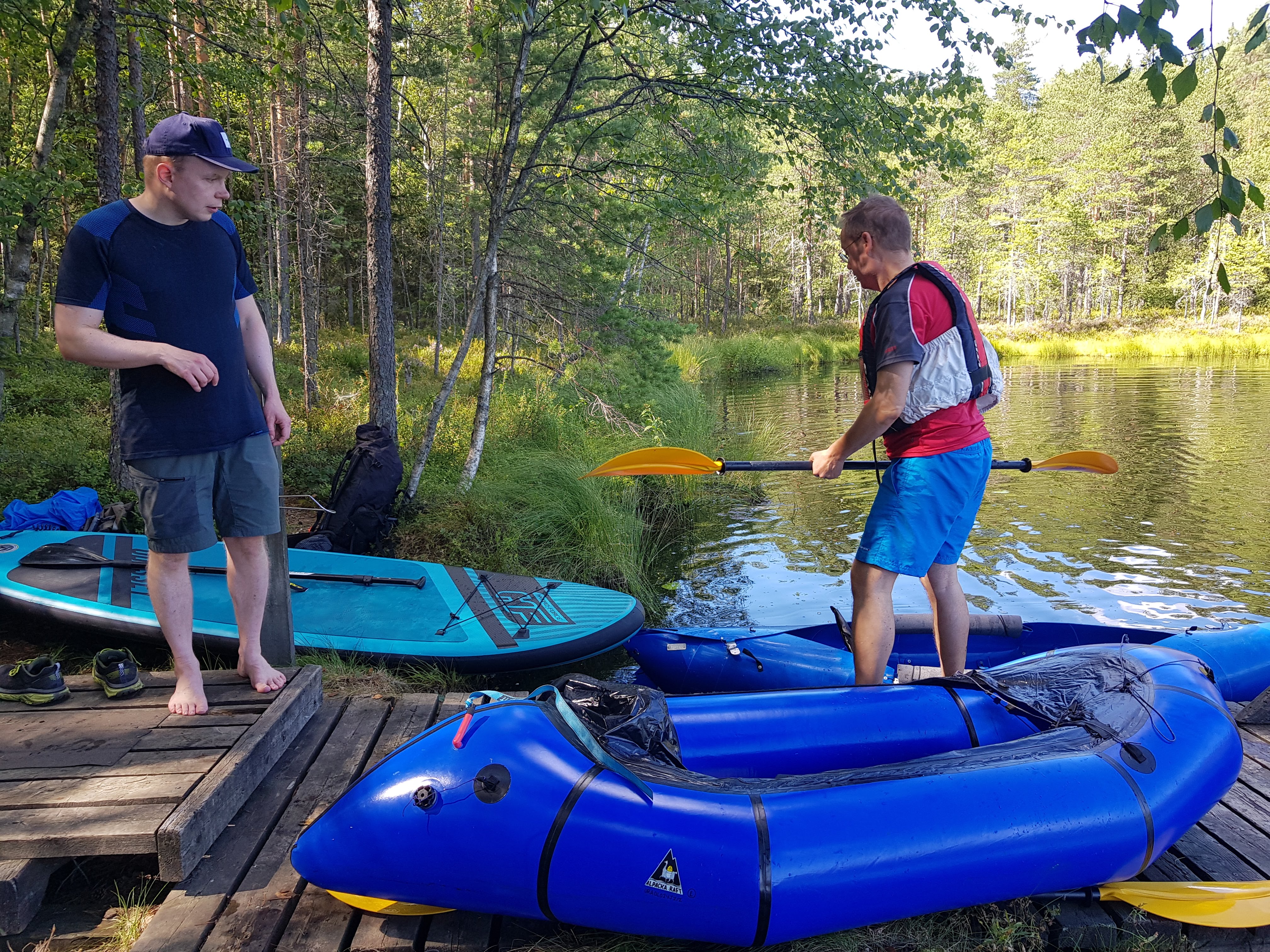 Jos patikoidessa haluaa kuljettaa vesistönylitysvehjettä rinkassa, packraftia on paha päihittää. Kymmenien kilometrien melontaan ne eivät taivu ihan sopuisasti lievän uimarenkaan sukuisuutensa takia, mutta järven yli tuommoisella roudii rinkan niin että heilahtaa.