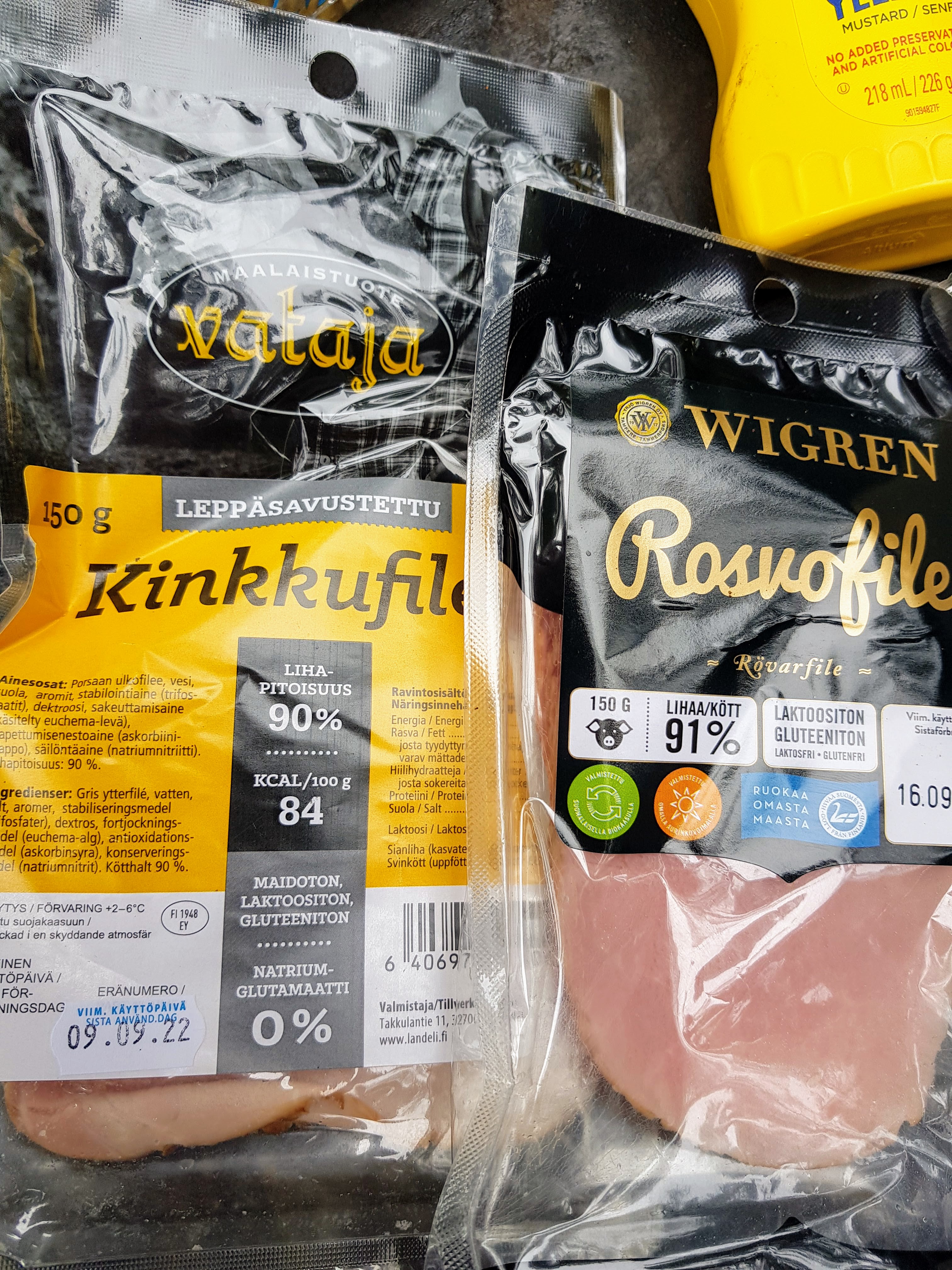 - Rosvopaistifilettä ja savukinkkufilettä 8+8 siivua eli 2 siivua per kerrosleipä
