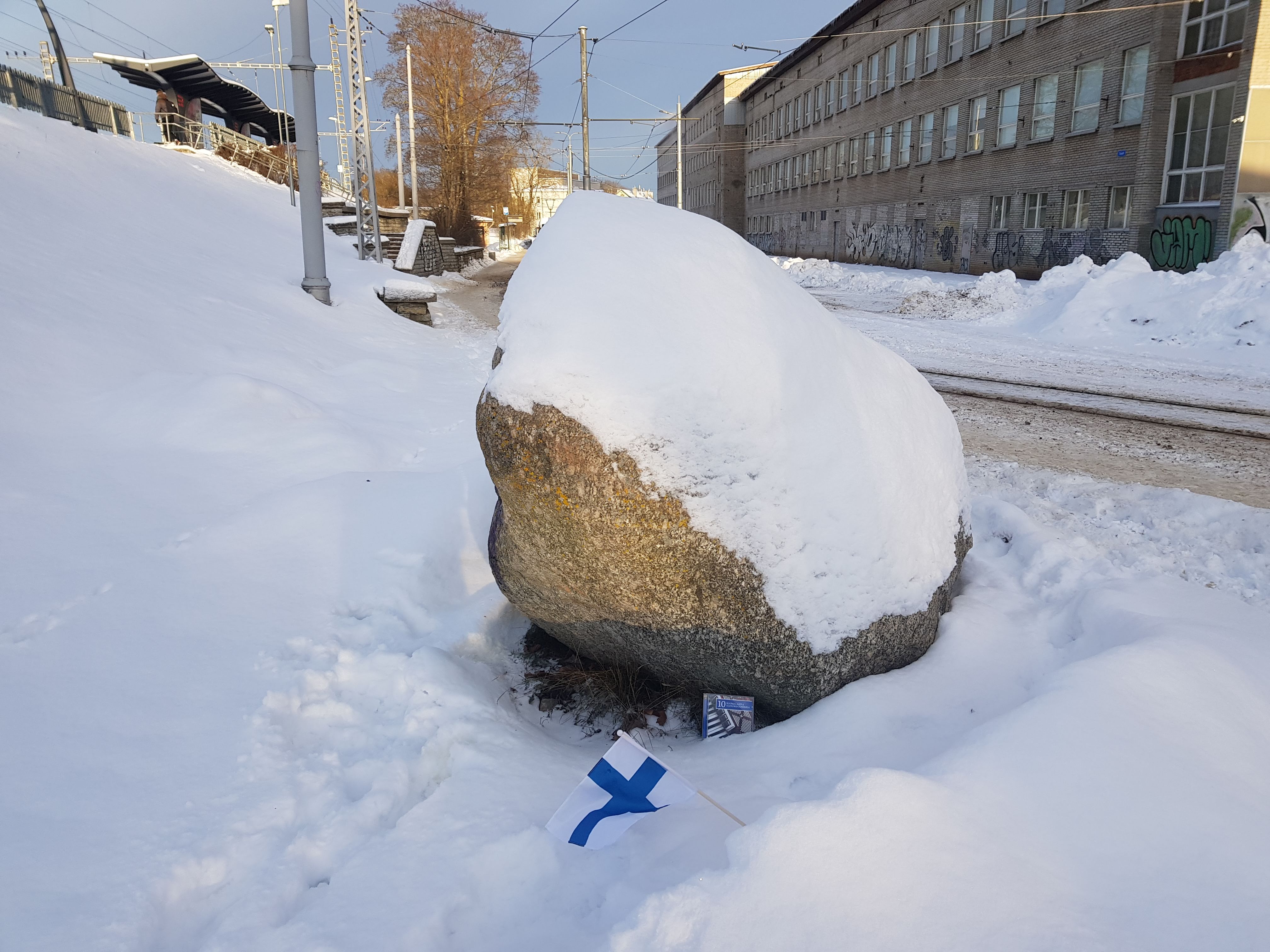 Muun diplomaattikunnan kärsiessä aamuhorkasta livahdin omin päin asentamaan levyn ja lipun Tondin kuuluisan kiven juureen. Noin 3 kilometrin tarvonta 17 asteen pakkasessa oli pieni hinta maksettavaksi siitä, että pääsin todistamaan tätä majesteettisuutta. Tässä karttalinkki.