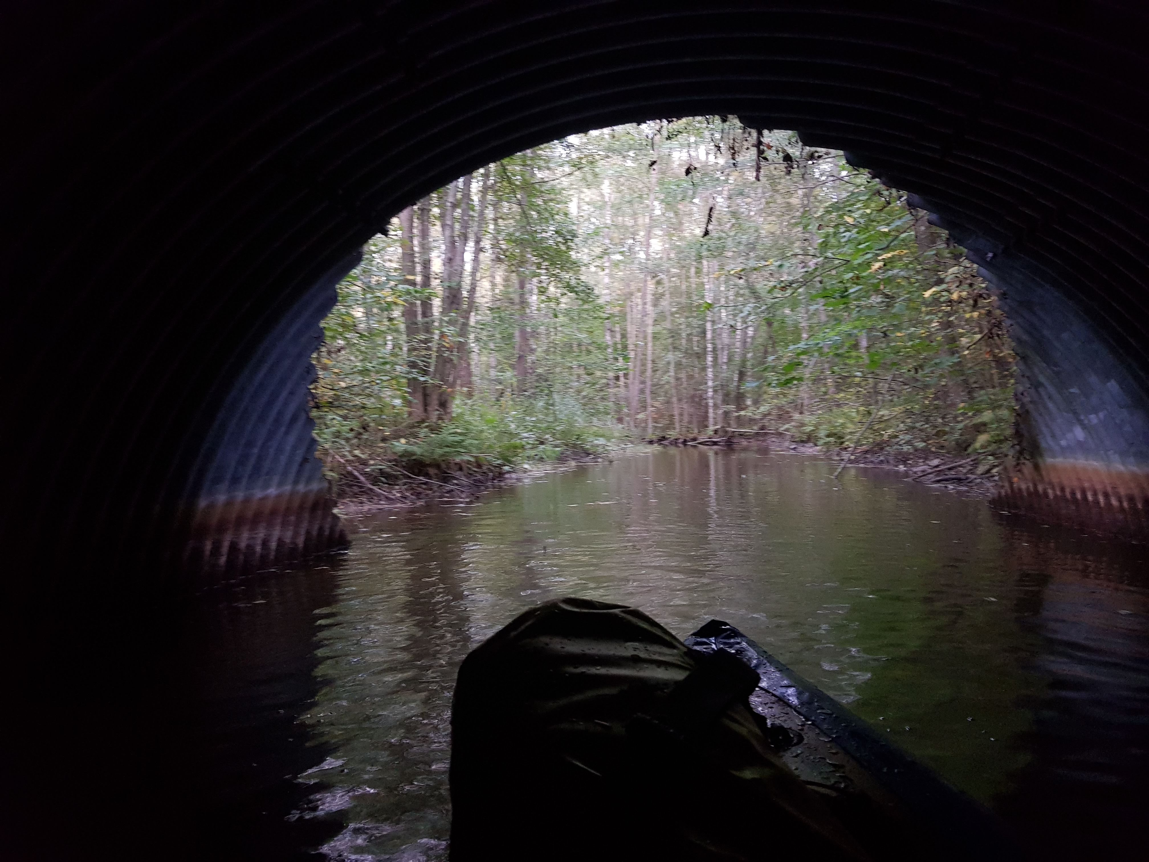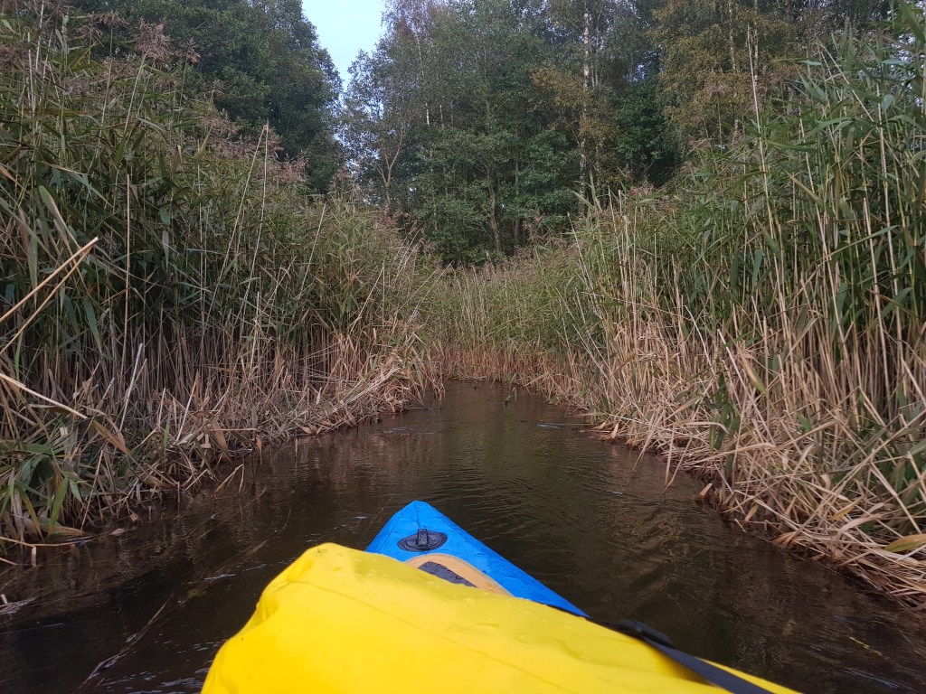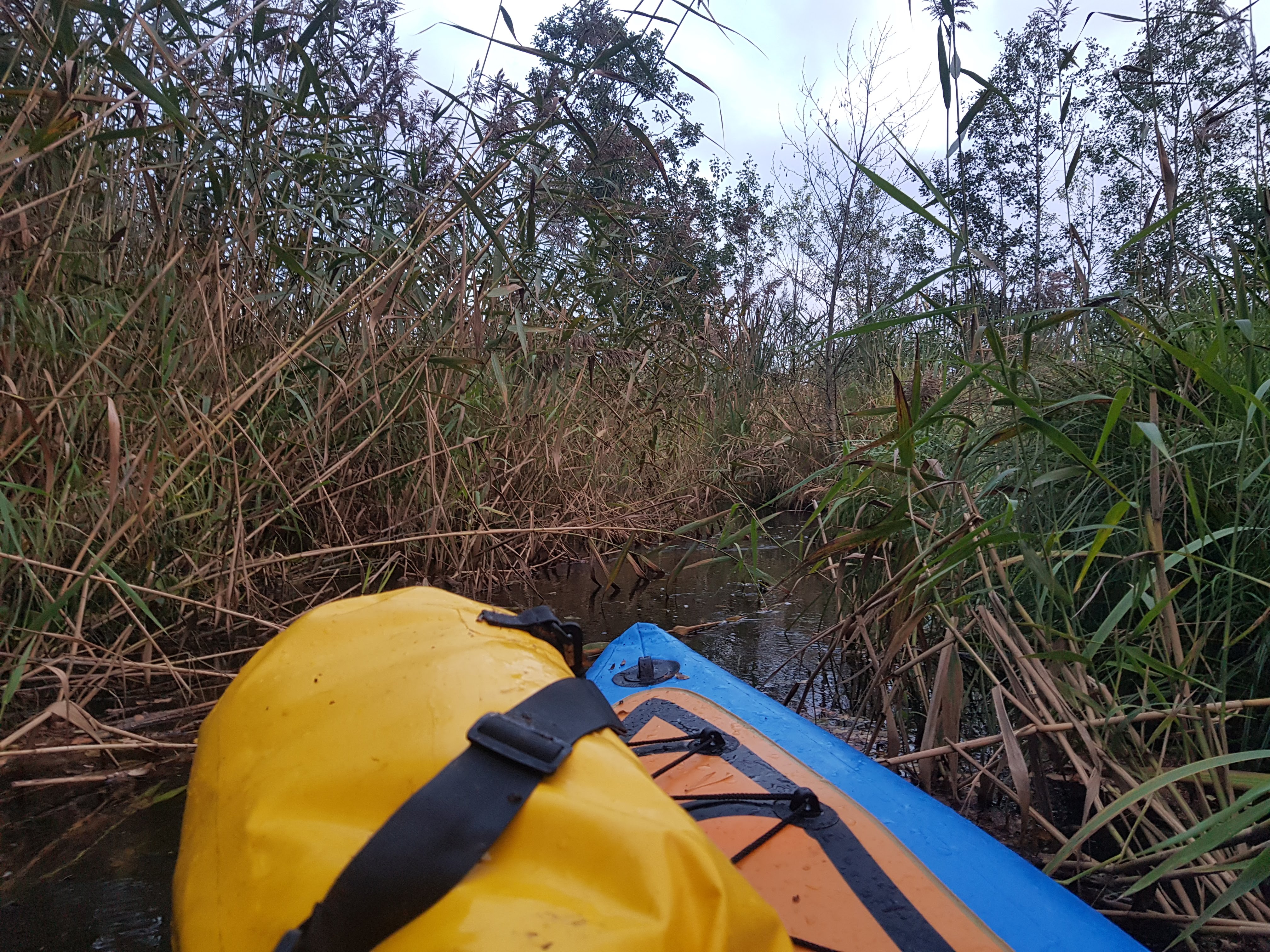 Kaartjärveltä joen alkuun tullessa sisääntuloaukon hoksaaminen on pykälän leap of faith -osastoa, mutta siinä se on missä kartta sen sanookin olevan. Kaislikon kulmilla on myös poiju lähellä änkemisränniä. Reittiä oli Lopen sivujen mukaan raivattu muutamaa kuukautta aiemmin: jos paikalle eksyy raivaamattomaan aikaan, paikan löytäminen ja kaislikon läpi änkeäminen saattaa olla pykälän tai pari vähemmän helppoa. Käytä lapaluita ja luota gepsiin.