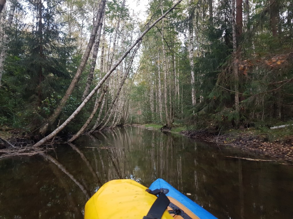 Kaartlammin notskipaikan jälkeen joki on mainion metsäistä, ja välillä päästiin limboamaankin. Vuoden 2023 satokauden ansiosta myös herkkutatit pomppivat silmille vähän joka penkalta.