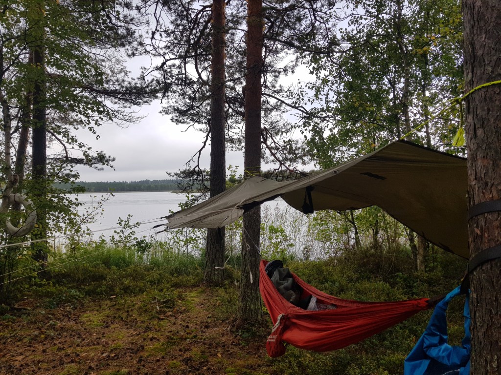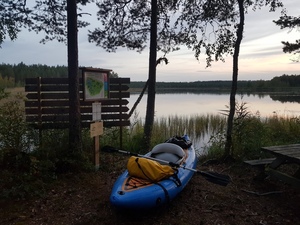 Asettelin leirin Kaartlammen nuotiopaikalle, josta matkaa jatkettaisiin seuraavana päivänä perästä saapuvien kahden R:n kanssa. Paikka on muuten ihan täysinvarusteltu, mutta yhden infokyltin mukaan puuhuoltoa sinne ei tehdä. Eli kaasua tai omaa puuta mukaan täällä rötväilyyn.