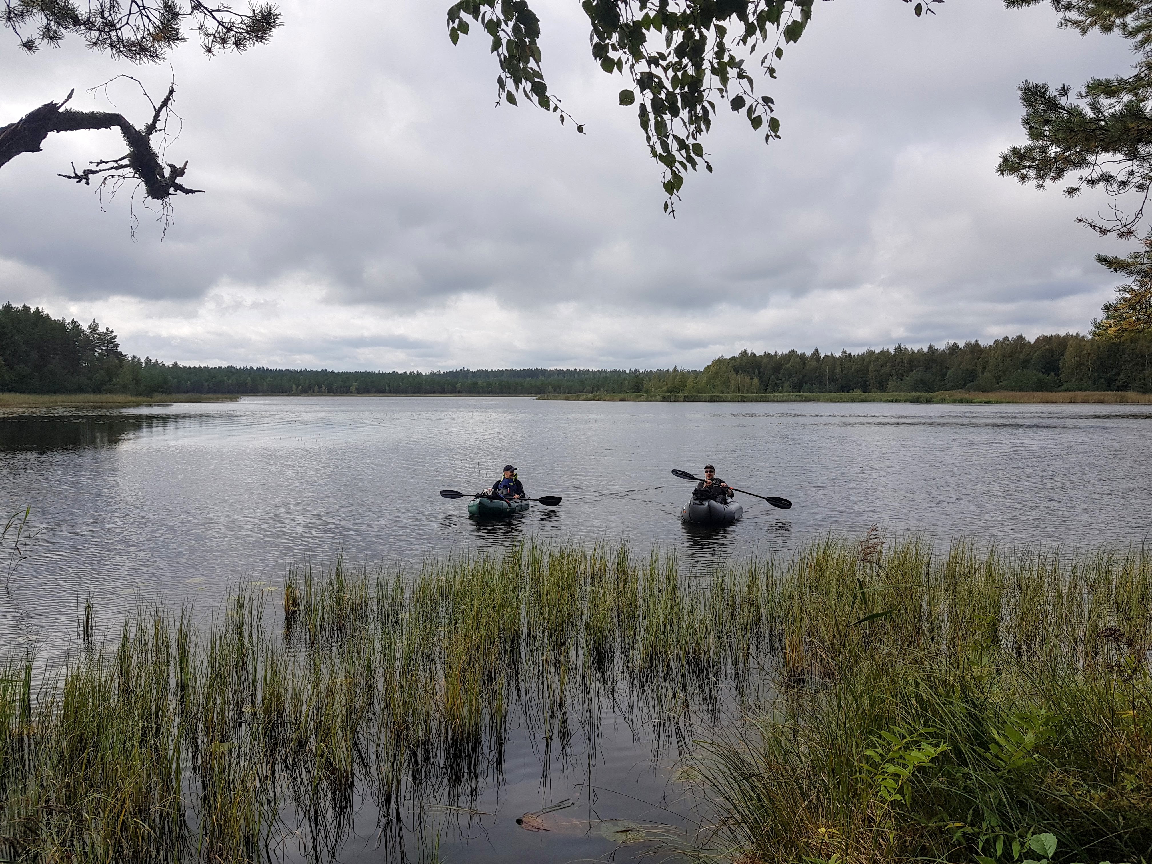 Itse pungersin kohti Lopen erämaita jo perjantaina töiden jälkeen, R ja toinenkin R liittyivät seuraan vasta seuraavana päivänä. Koska startti jäi vähän viime tipoille ja pimeä uhkasi niskassa, en suoriutunut ottamaan kovin erikoisia napsuja alun järviosuudelta ennen varsinaisen Kaartjoen alkua. Siellä oli onneksi kovin fotogeenistä, joten ei iso menetys.