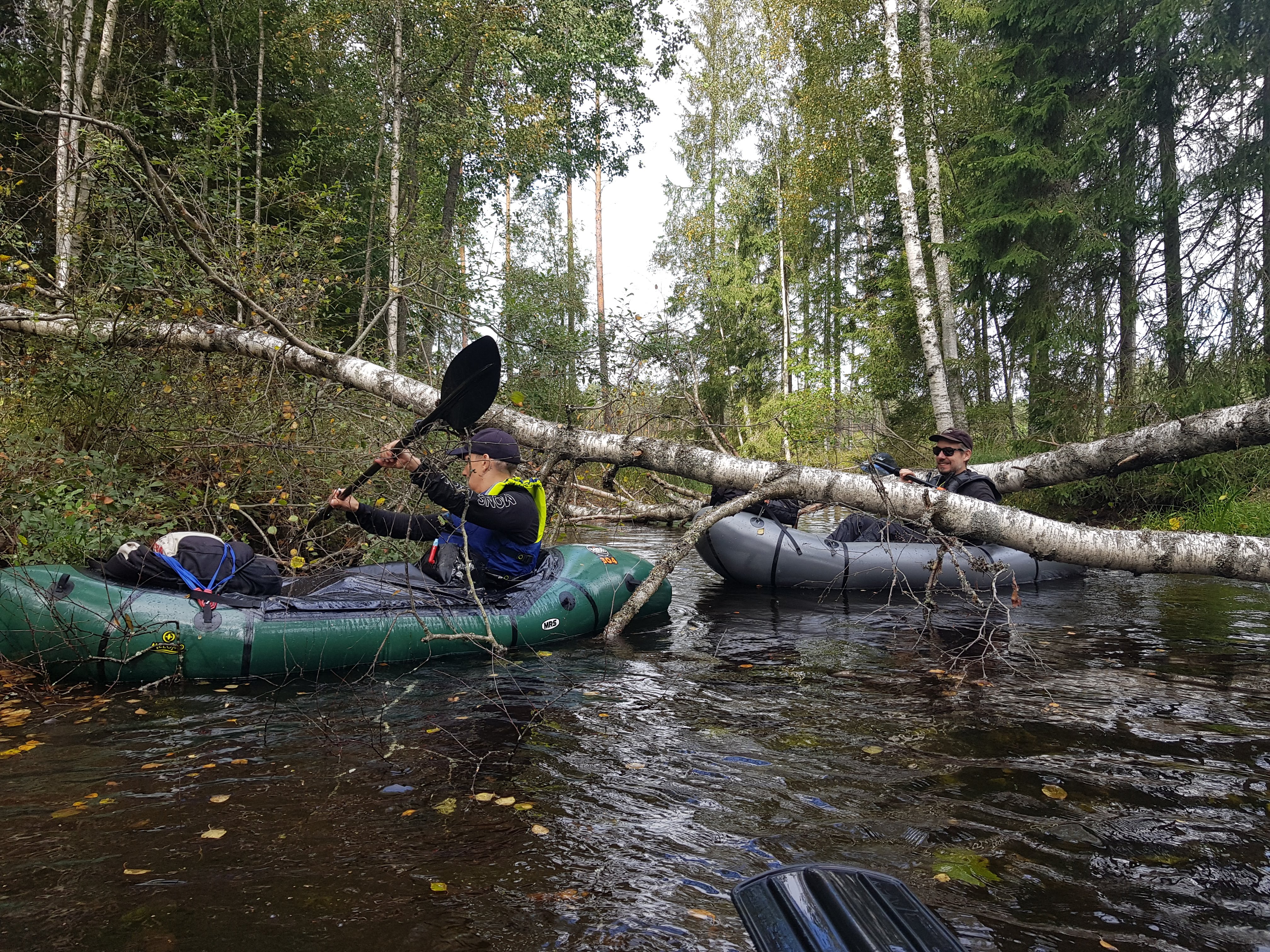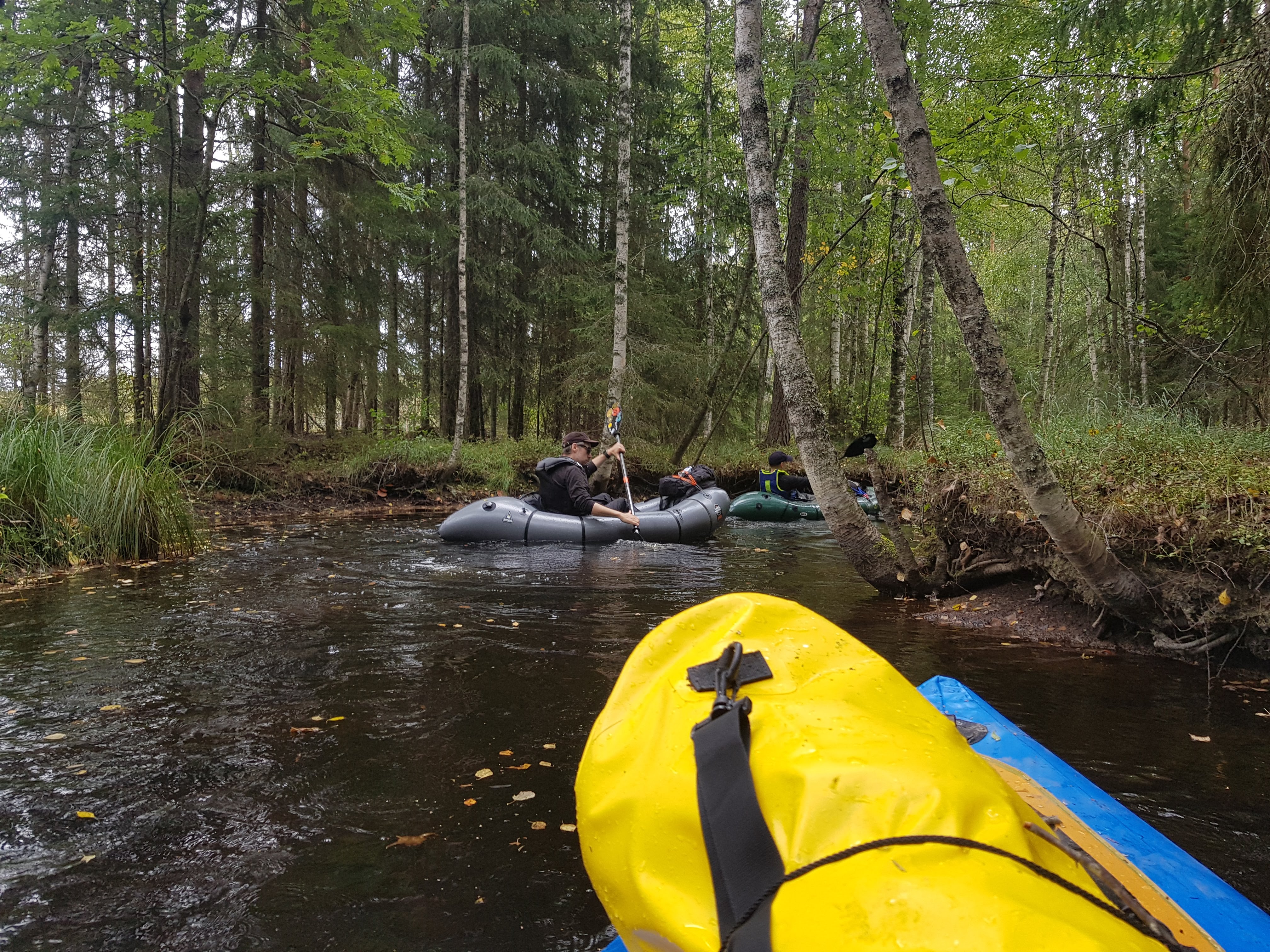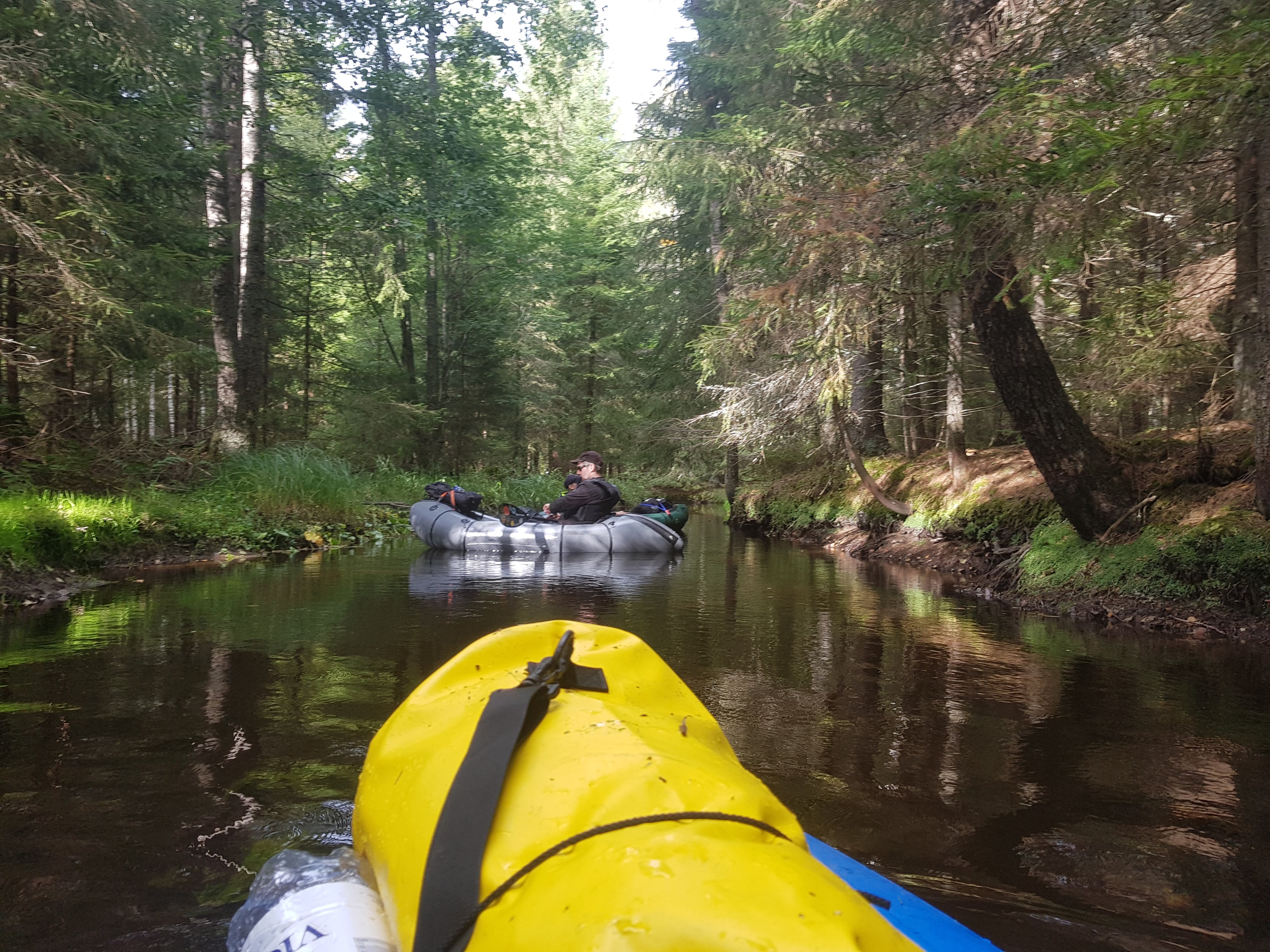 Seuraavana aamuna(ish) seuraan liittyi osasto R&R, joilla oli molemmilla alla epäreilun ammattimaiset packraftit. Tähän etappiin asti Bestwayn alle huntin kiituri oli ollut enemmän kuin hintansa väärti, mutta pidemmälle jokea edetessä laatuerot alkoivat semisti paistaa läpi.