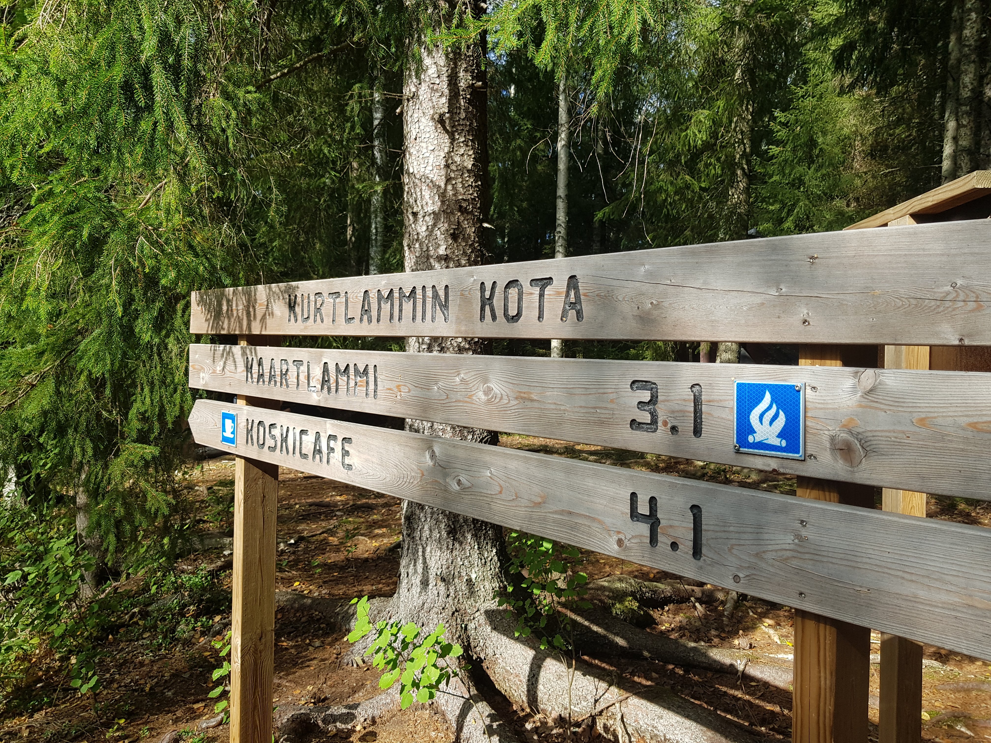 Noin pari kilsaa Kaartlammin nuotiopaikan jälkeen vastaan tulee yksityinen laavukompleksi, josta on vielä suunnilleen kilsa sille yleiselle laavu- eli kotapaikalle, Kurtlammin kodalle. Kodan kohdalla matka on edennyt kylttien mukaan 6,3 kilsaa Sähkönokan startista: lounasaika.