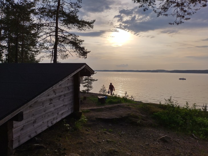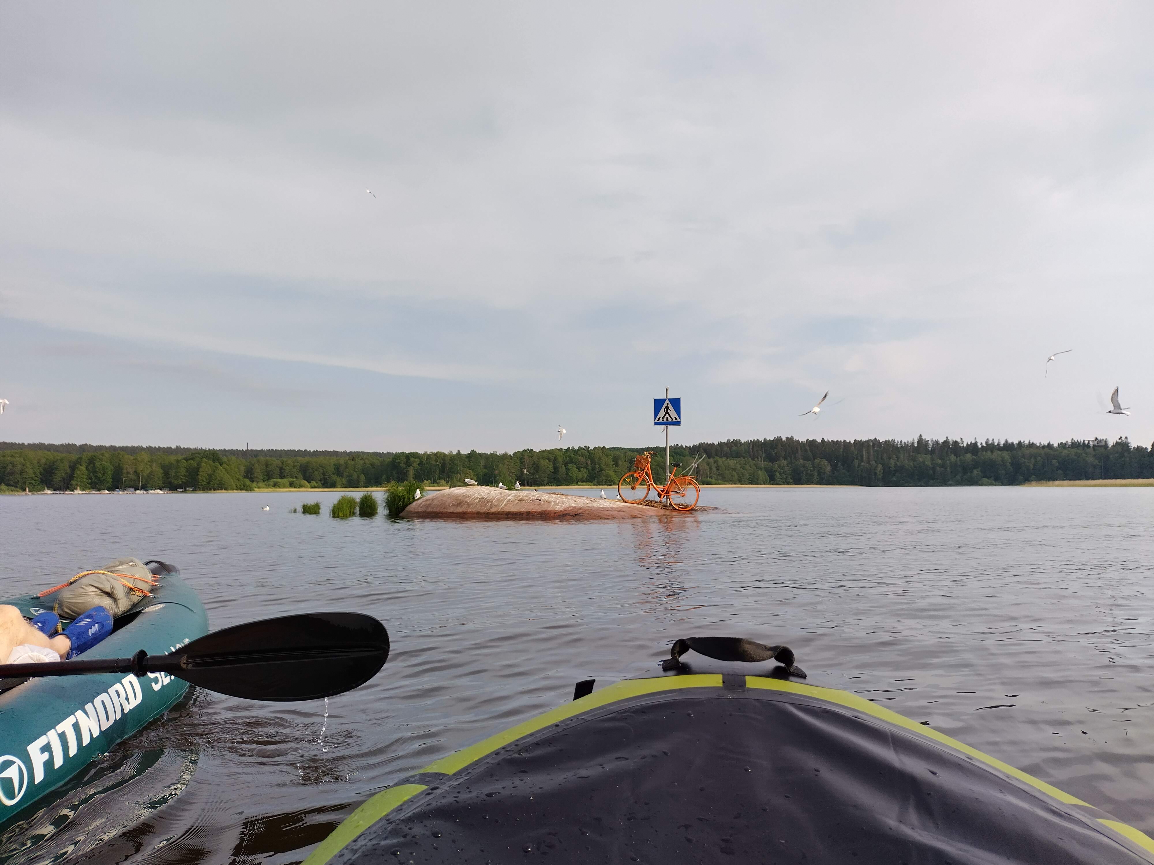 Hevossaaren jälkeen seuraaville laavuille eli Liesaaren länsikärkeen on jo hyytävä jopa useamman kilometrin melonta, riippuen siitä kiertääkö saaren etelän kautta vai piipahtaako pohjoispuolella vähän lyhemmälti eestaas. Me päätimme vetää koko rahan edestä ja kiertää koko saaren, mikä osoittautuikin ihan hyväksi valinnaksi. Päällimmäiseksi sen takia, että saaren eteläpuolella on fillari.