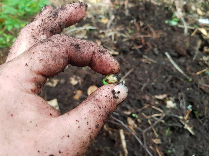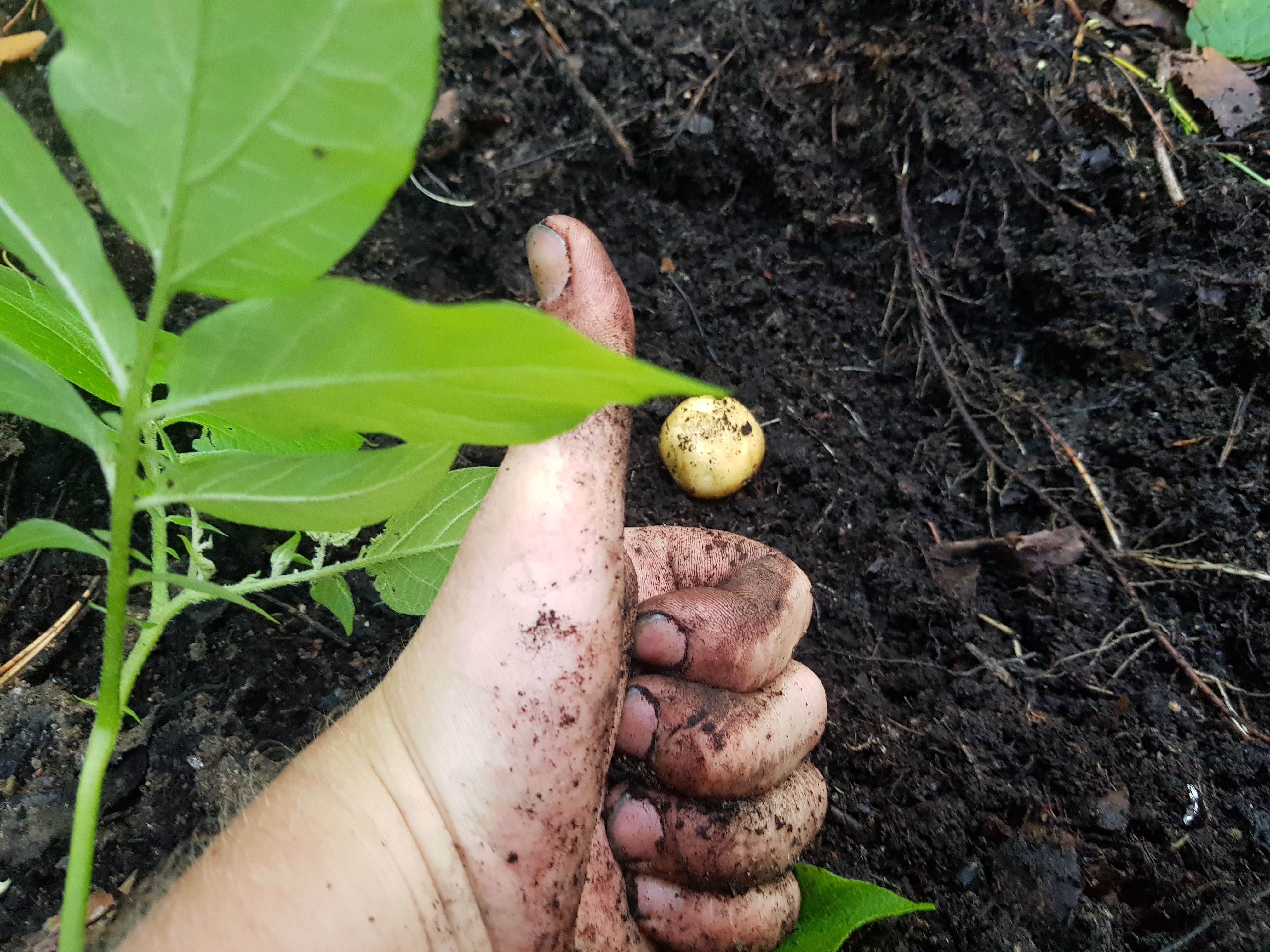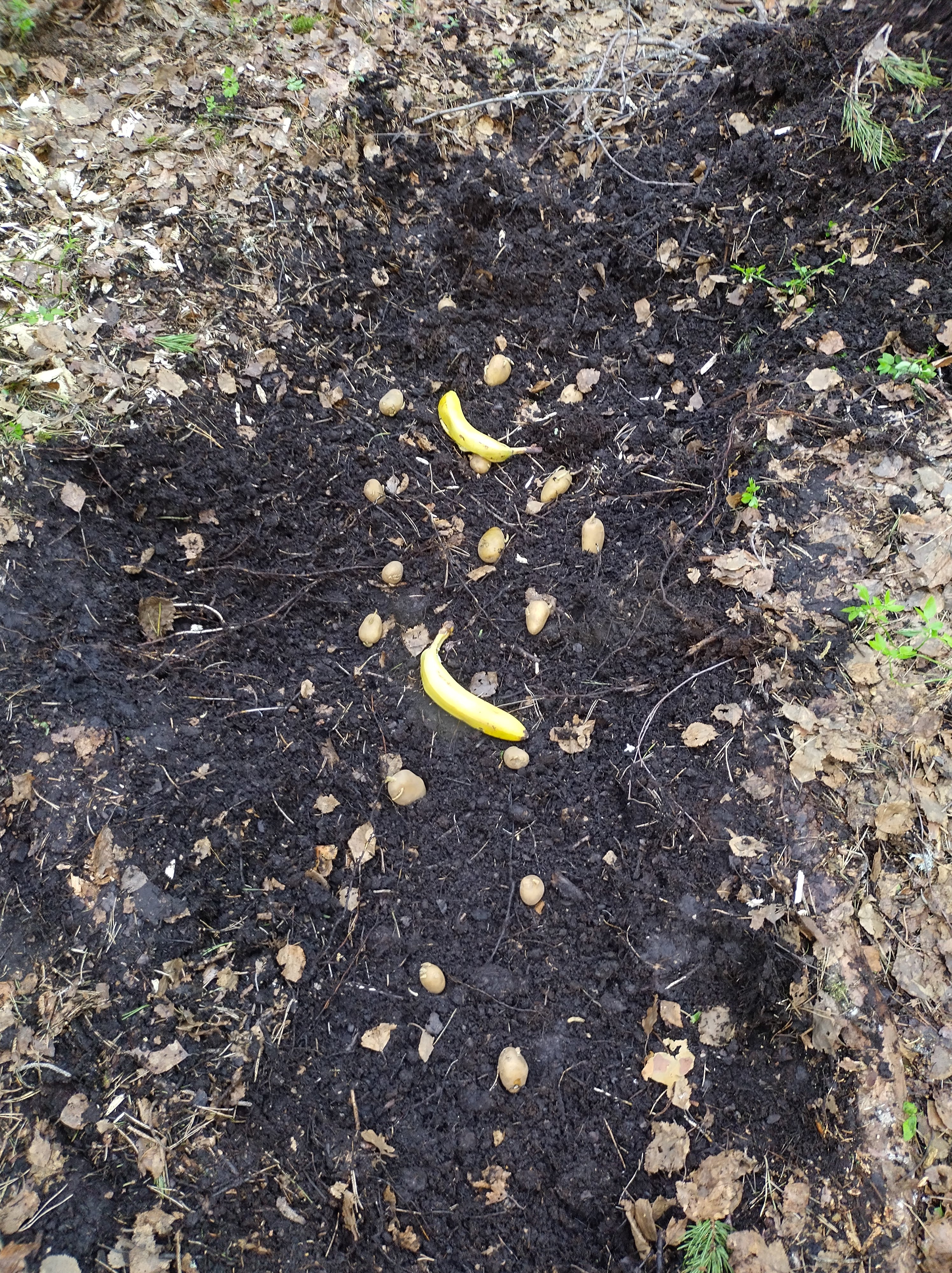 Eli näin! Metsäperunat ovat toimineet tähän mennessä neljänä vuonna putkeen, tosin toisena vuonna Villen kuppaisilla jämäsiemenillä ja körttiläisellä lannoitustaktiikalla meinasi tulla kato. Opetukset: laita sinne banaaneja ja vaikka mitä, siemenperunoiden asettelu on silkkaa lottoa, kivennäisvesi on myös hyvä lannoite, laita vaikka ruisleipää jos muut maatuvat on loppu.