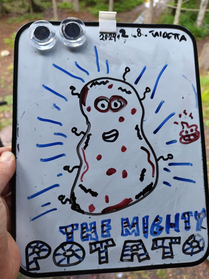 Viherhuollon avustuksella potaattia siunaantui ah niin hyvin. Pöpelikkö oli viimeisen päälle.
