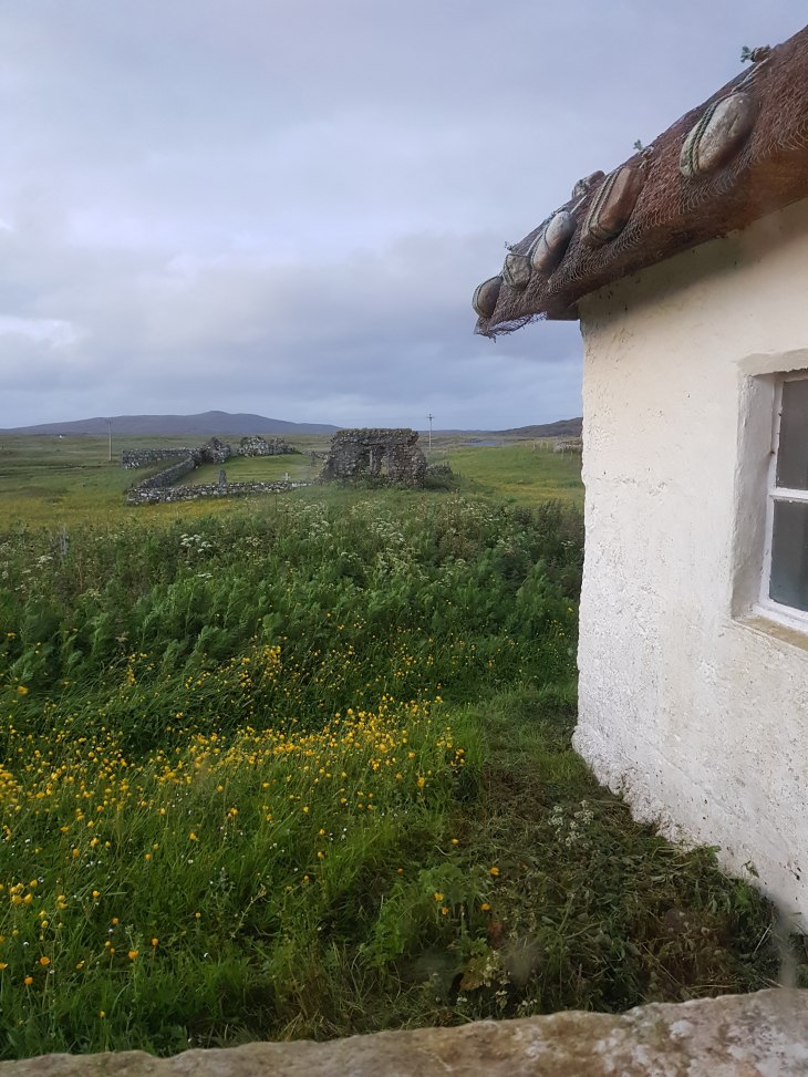 Lautalta rantauduttua päästään aika pian erittäin edustaville nummille (soille), joiden lopuksi tarvonta palkitaan jäätävän hienolla näköalalla Scaristan rantsuun.