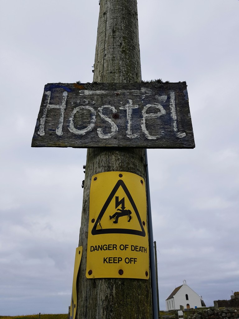 Siellä olisi tarjolla useampiakin majoitusvaihtoehtoja, mutta me tähtäämme muutaman kilometrin verran rantaviivaa itään kohti Bernerayn hostellia. Heti alkumatkasta vastaan tulee Berneray Shop and Bistro, jossa kannattaa pysähtyä tankkaamaan kakkua kahvilasta sekä kaupan puolelta reppu täyteen evästä hostellille. Ja mikä hostelli! Sinne taitaisi kulkea bussikin tämän kaupan vierestä, mutta herran haltuun milloin ja monestiko: paluumatkalla pääsimme sellaisella takaisin sataman mestoille.
