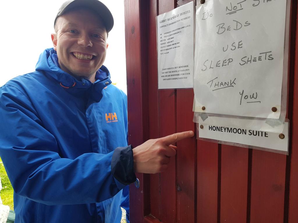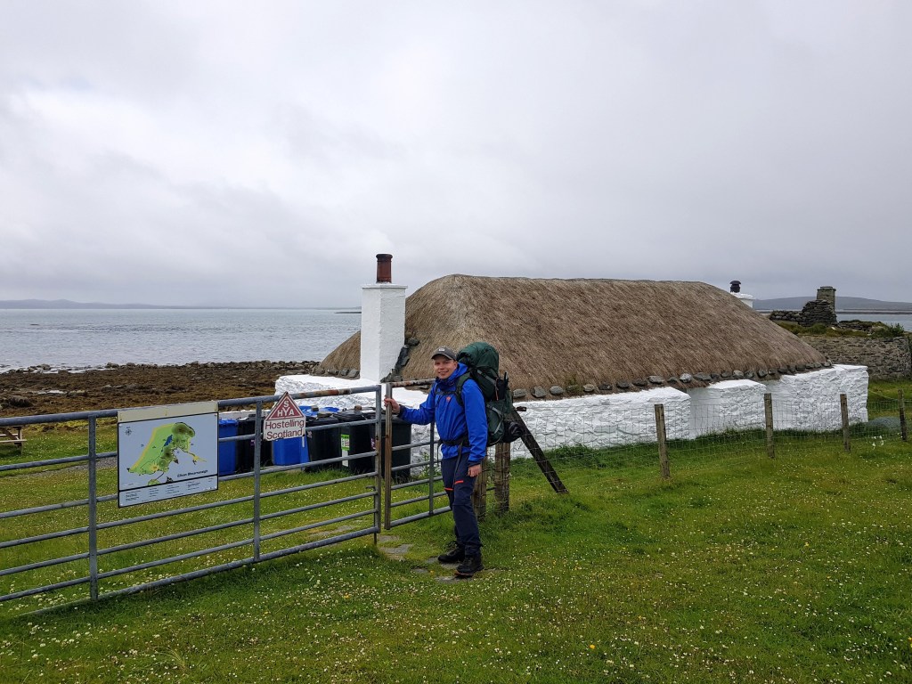 Fillari-Janekin ilmestyy jostain kierrokselta yhteistupaan, ja omituinen moottoripyörällä liikkunut eläkeikäinen porho kertoilee paikallistarinoita likaisille haikkereille. Leirintäalueen paksu patu hekottelee ja säestää, autotallimainen keittiötupa pitää meren ulvonnan loitolla ja marketin oluet sihahtelevat. Erinomaisen tunnelmallinen refuge: yöksi telttaan kuuntelemaan huminaa ja sitten huomenna yhyttämään Benbeculan pelottavalle lentokentälle saapuva Ville.