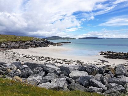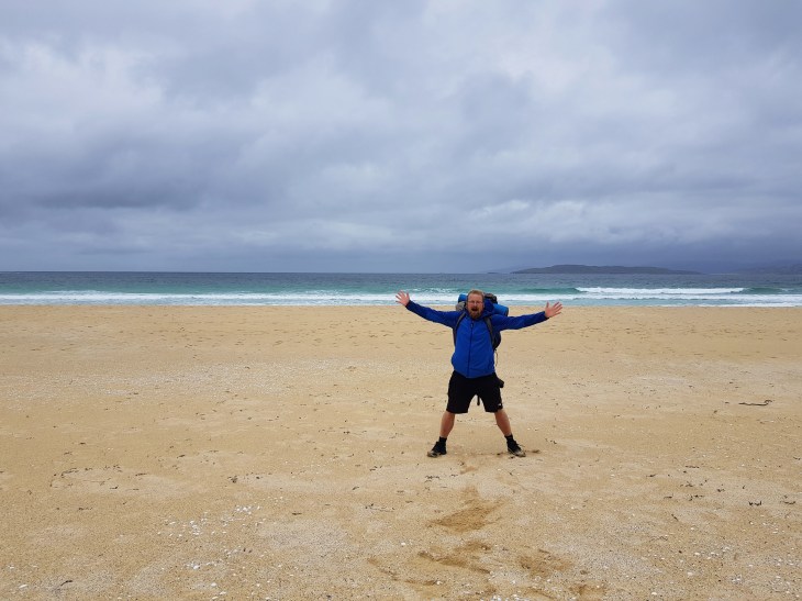 Scaristan näköalapaikalta laskeuduttua jatkellaan hyvä tovi rantaa pitkin, ja nähdään mm. Chris Lewisin (Chris Walks the UK) yösijana toiminut bussi (jos se on siellä vielä, ainakin 2022 oli). Tässä ollaan ehkäpä joidenkin reitin hienoimpien rantojen äärellä, paitsi tulee sieltä vielä se tosi kuuluisa eli Seilebost vähän matkan päässä. Jos on paljon aikaa ja hyvä pössis, Scaristassakaan ei ole huono valinta käydä uimassa. Kylmähkö sekin luultavasti kyllä on.