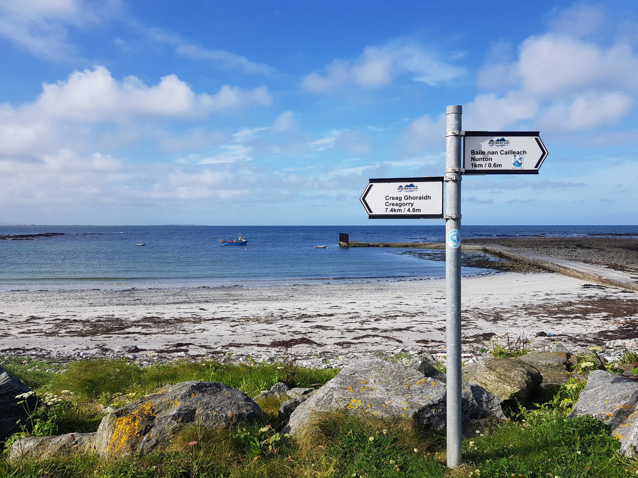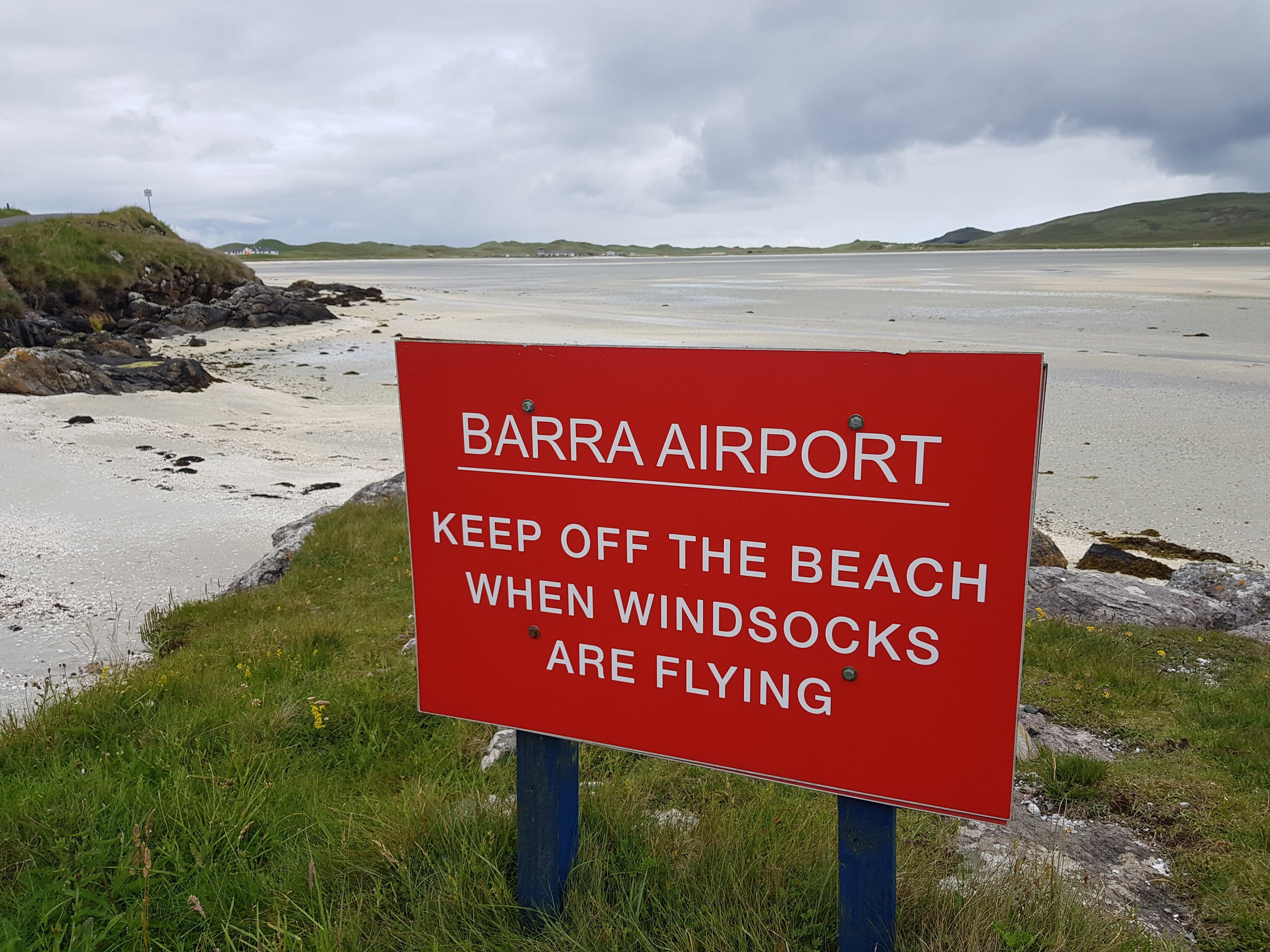 Vaan ei hätää: eteläpäätyyn saaria eli Barraan pääsee lentämään Glasgow’sta mainiolla pienellä prutkuttimella, tai sitten myös muutamaa päiväetappia pohjoisemmaksi reitin varteen Ballivanichiin. Ainakin vuonna 2022 Loganair lensi Glasgow’n kentältä Barraan noin tunnissa, ja jestas että onpas komea reitti. Ballivanichin kenttäkään ei näyttänyt kovin massiiviselta, mutta ainoastaan Barrassa se pieni lentokoneen ritsku laskeutuu hiekkarannalle.