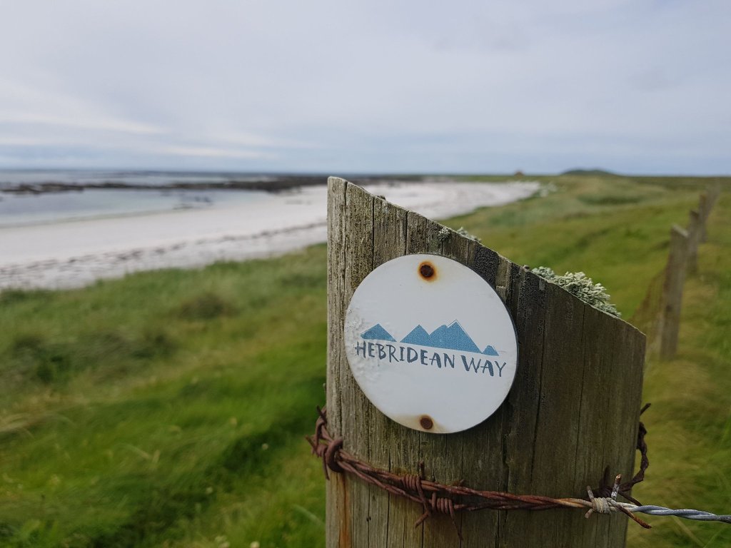 Hebridean Wayn kotisivujen kautta saa tilattua erinomaista opasta, jossa on mukana hyvinkin riittävät karttasivut kustakin etapista. Kierresidottu vihko on just passeli siihen, että sitä voi jemmata taskussa auki kunkin päivän karttasivun kohdalla ja kaivella aina ulos pikaiseen vilkaisuun. Myös Ciceronelta löytyy opas reitille eikä sekään ole lainkaan huono. Itse ostin molemmat, ja kummallekin tuli kyllä käyttöä. Jos haluaa pärjätä vain yhdellä printillä ja vähempikin taustafiilistely riittää, niin sitten varmaankin pelkkä Hebridean Wayn oma vihko on tarpeeksi (tosin jotkut sen infot olivat jo ehtineet maatua esim. koronan sulkemien kahviloiden osalta). Opasteet ovat myös melkeinpä aina just kohdillaan.