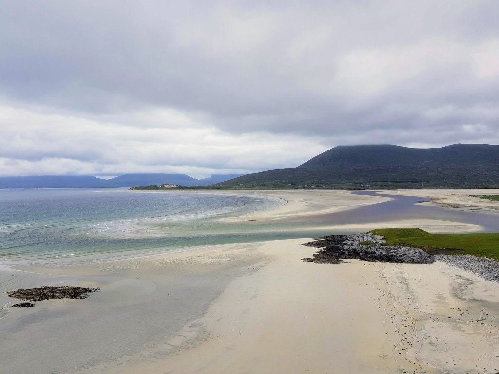Tämä oli huolella hapokas päivä, hienoa muistella menneisyyden Antin kärsimyksiä! Heb Wayn nettisivuilla esitetty näin. Horgabostin leirintäalueelta liikahdettuamme saavuttiin pian Seilebostin rannan äärelle, ja olihan se aikamoisen eeppinen Karibian siivu eksyneenä ihan väärään paikkaan kovin pohjoiselle Atlantille. Saman lahden hollilla on myös ainakin yhtä kuuluisa Luskentyre, joten jos uiminen jossain eeppisessä rännissä kiinnostaa, tämä on se paikka.