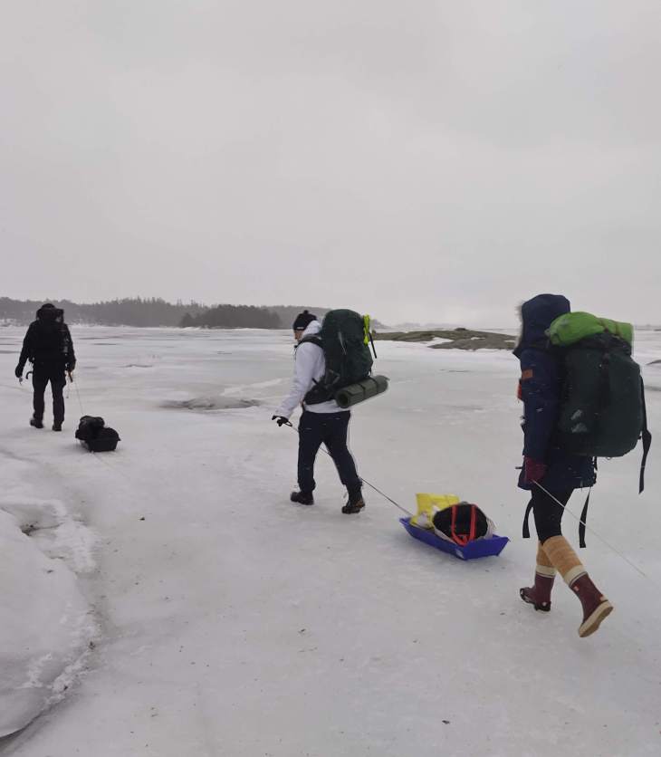 Miksei veneelläkin! Helmikuun puolivälissä meri oli vasta länteittäin auki Porkkalan edustalla, joten jalkapelillä kulkeminen oli…